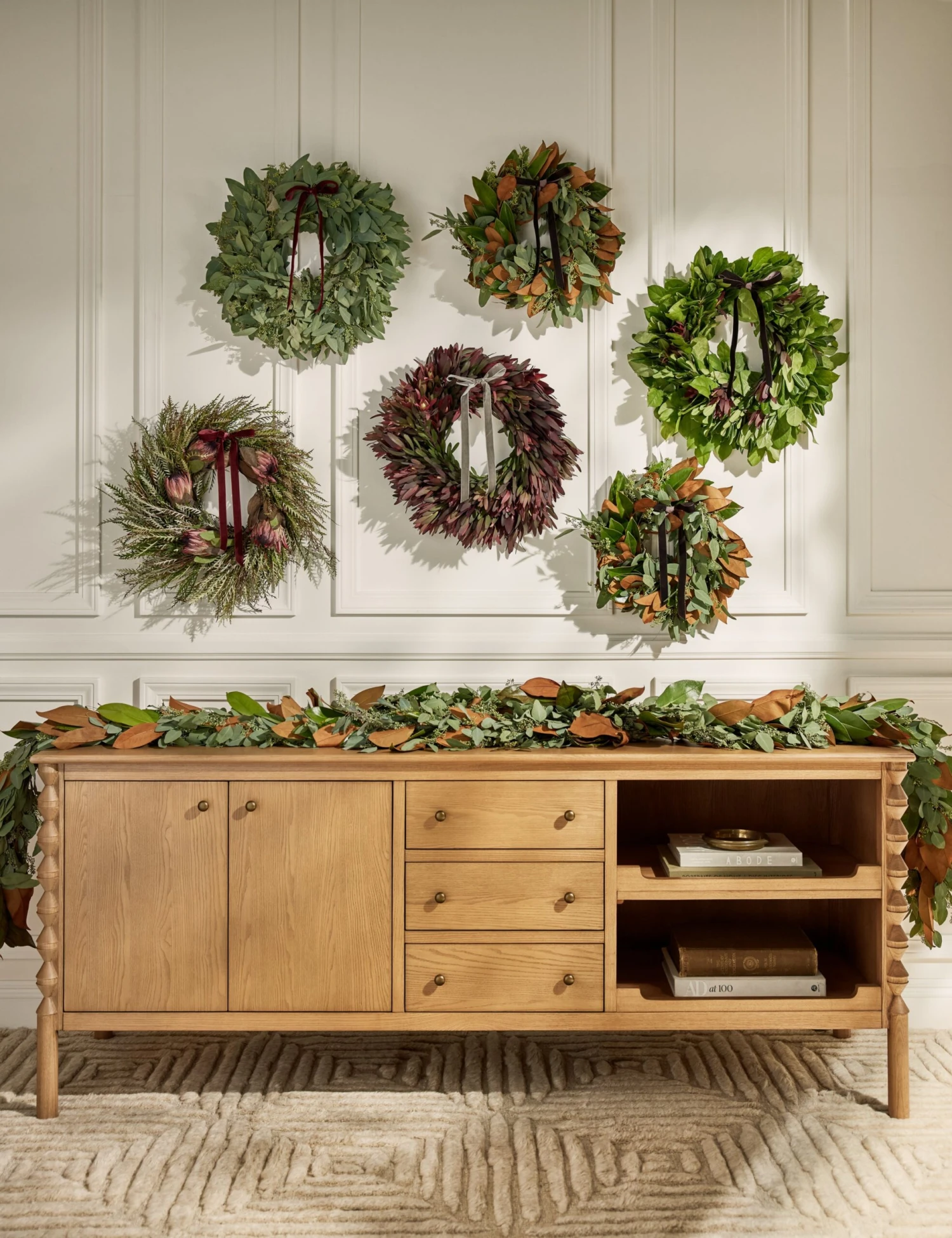 Bring in the crisp textures of the season with this freshly cut seeded eucalyptus wreath. Each wreath is handmade to order with eucalyptus picked from the Northern California foothills so you can grace your entryway or cozy up your holiday decor with the sight, scent, and feel of natural greenery.