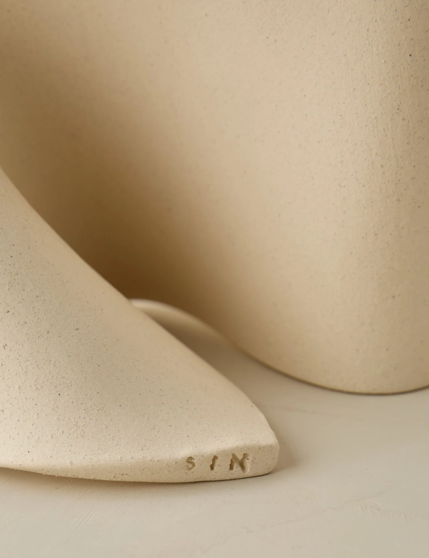 SIN is a Brooklyn-based brand that offers beautiful, handmade pieces designed with intention. This tabletop statement maker demands attention, whether styled as a centerpiece or tucked into a bookshelf curation. The ceramic form moves with a fluid line, stimulating visual interest in any setting.