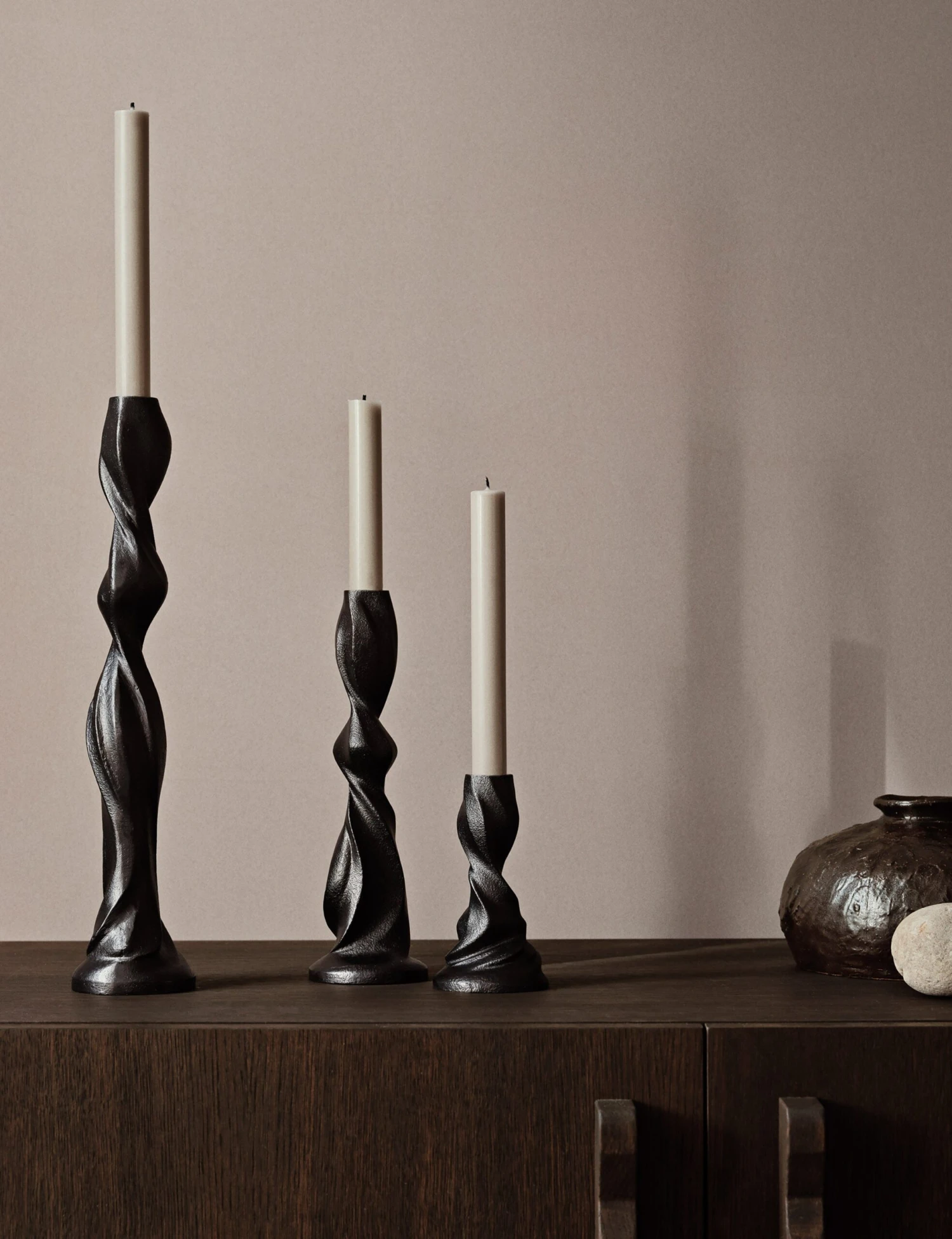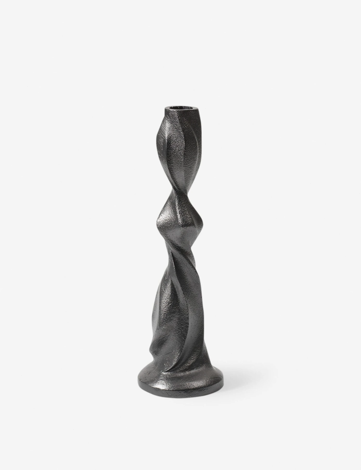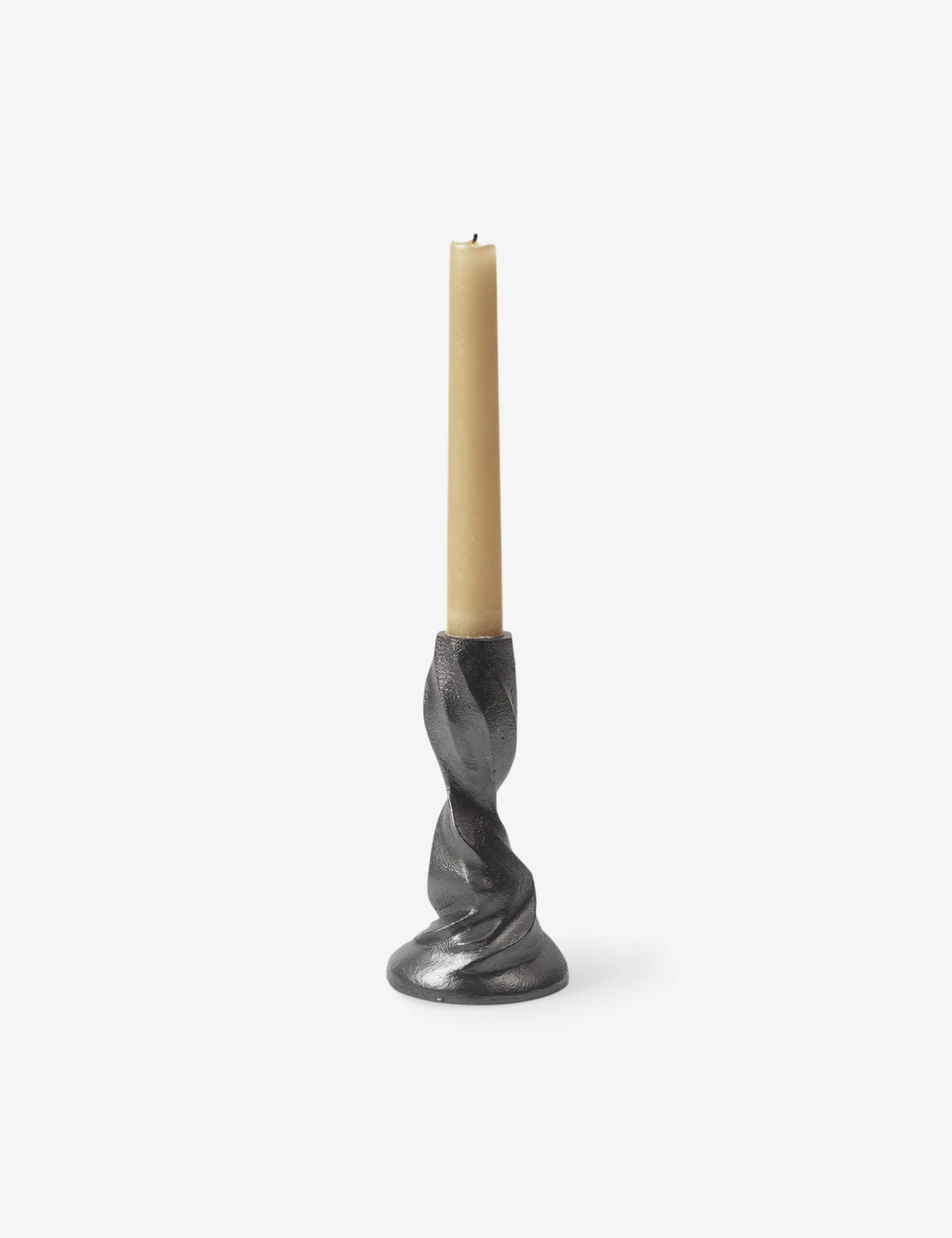Sometimes, it’s the smallest touches that set the tone. This metal candlestick’s twisting shape offers a sculptural edge, tempering a wrought industrial feel with sculptural elegance to elevate any tabletop curation.