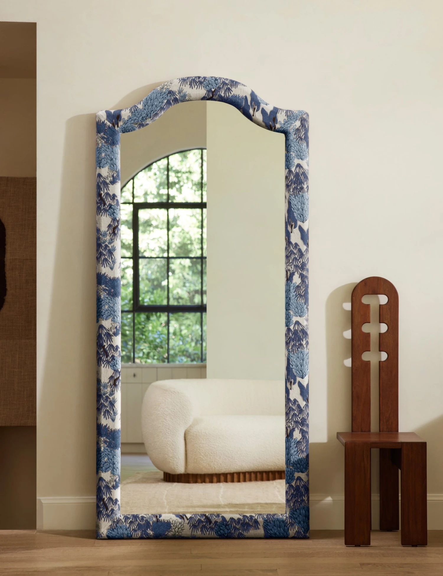 With its softly arched shape, this mirror adds a classic silhouette with a tailored touch. The upholstered frame reimagines classic botanical patterning in a richly detailed modern print. This full length mirror is from our exclusive Sarah Sherman Samuel collaboration and features all the trademarks of her warm, edited style.
