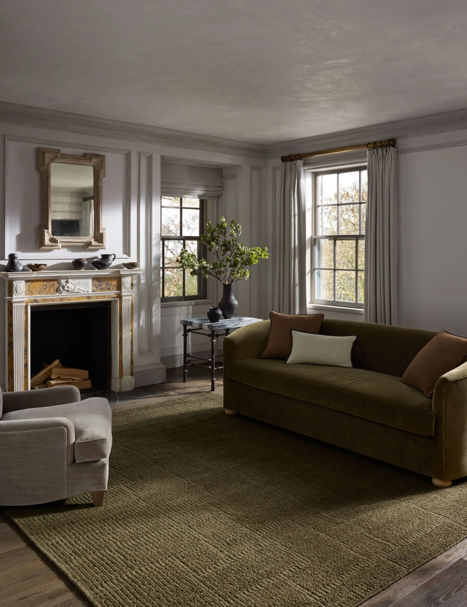 Jeremiah Brent has a talent for shaping spaces around people, grounding high design in a sense of personality and intention. In this collaboration with Loloi, he brings that approach to a collection of rugs marked by strong lines, meticulous craftsmanship, and a quietly bold style. The Greenwich Rug pairs a rich, solid tone with a supple tread, hand-loomed from a wool-cotton blend. Its high-low pile sets a subtle yet striking foundation underfoot.