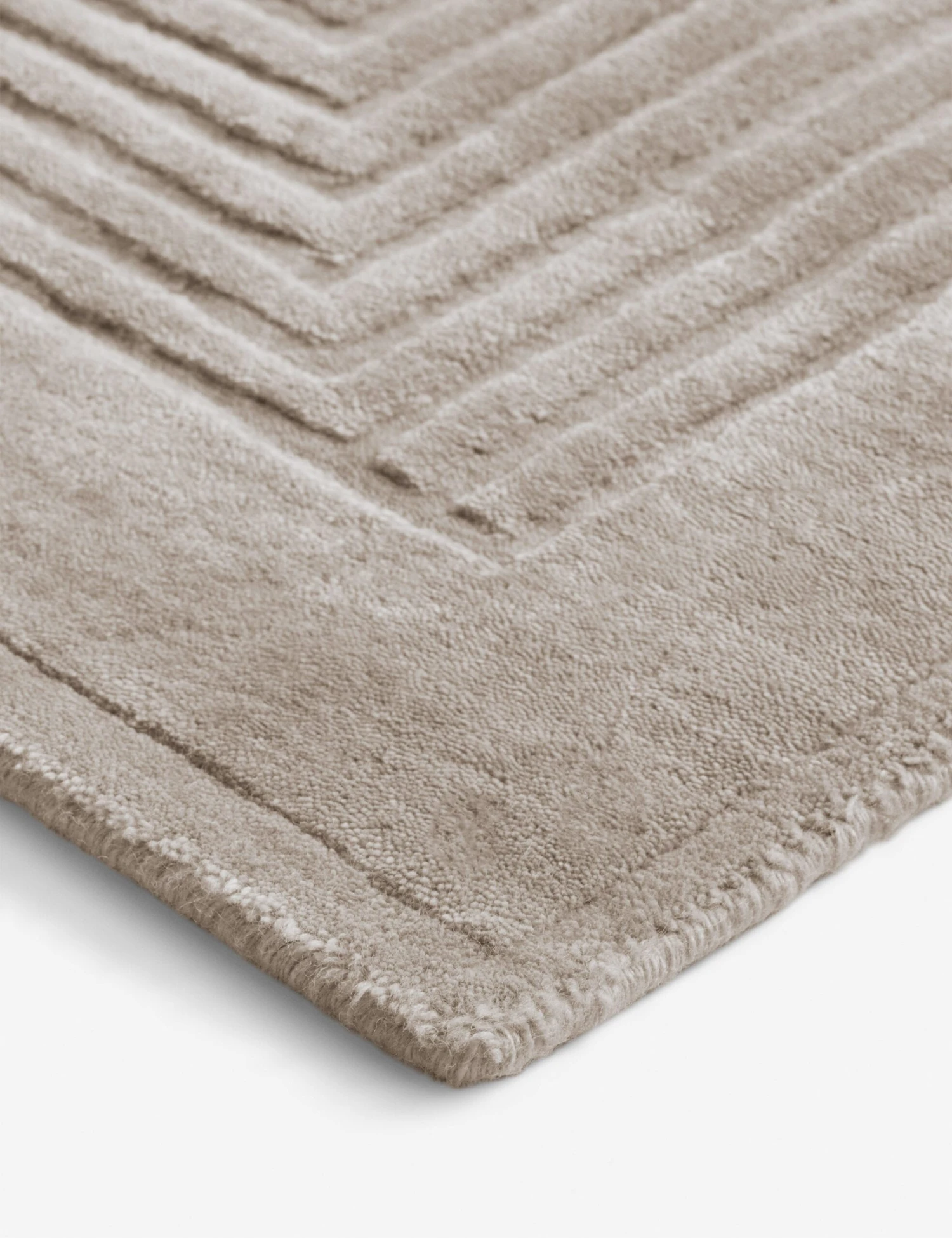 Lay a textural foundation with our Halden rug. The carved design creates a striking foundation with an understated impact in the room. We love this hand-loomed floor rug for a bedroom or elevated living space styled for luxurious comfort.