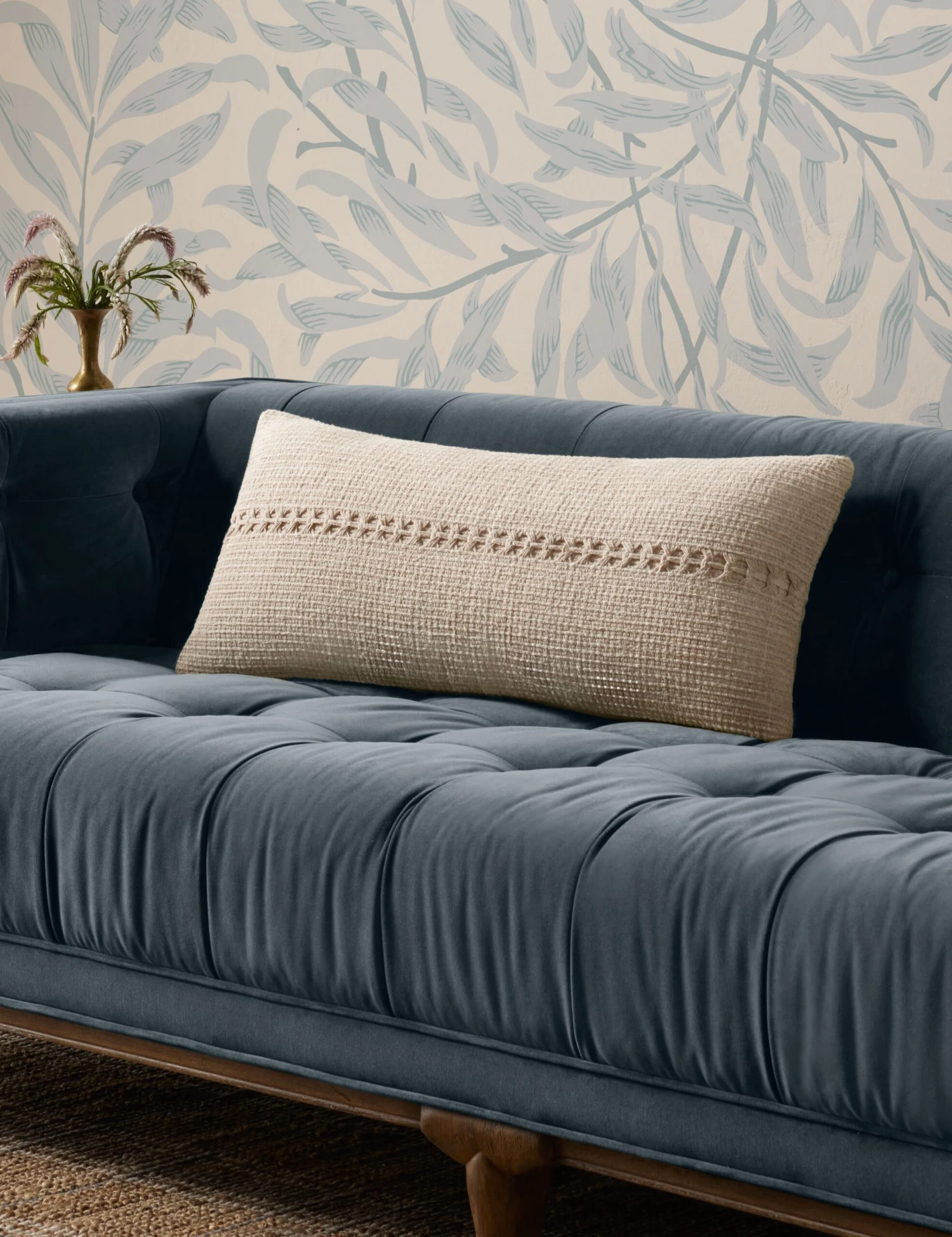 Soft texture meets fresh appeal in this signature pillow collaboration from Chris Loves Julia and Loloi. The Harvey pillow features a single textured stripe across a tonal woven ground for a quietly graphic effect. Style this lumbar pillow to bring tailored detail to a bedroom or lounge.