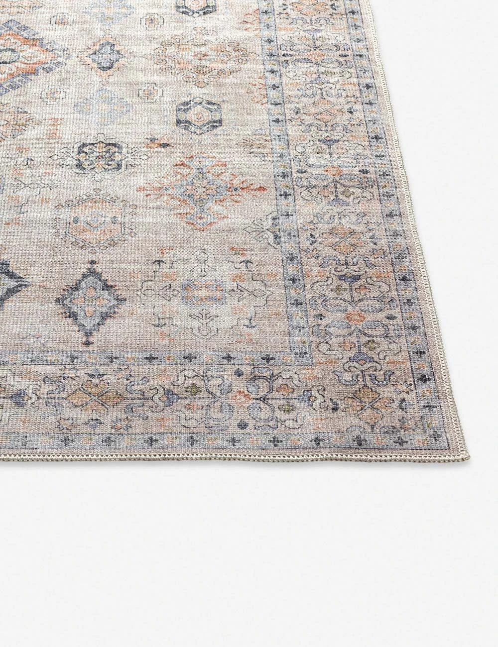 Featuring an ornately detailed border, medallion pattern, and subtly faded tones, this area rug lends a vintage look to your home. The rug’s modern construction is great for high-traffic areas and everyday spaces—and is machine washable for even more easy-care appeal.