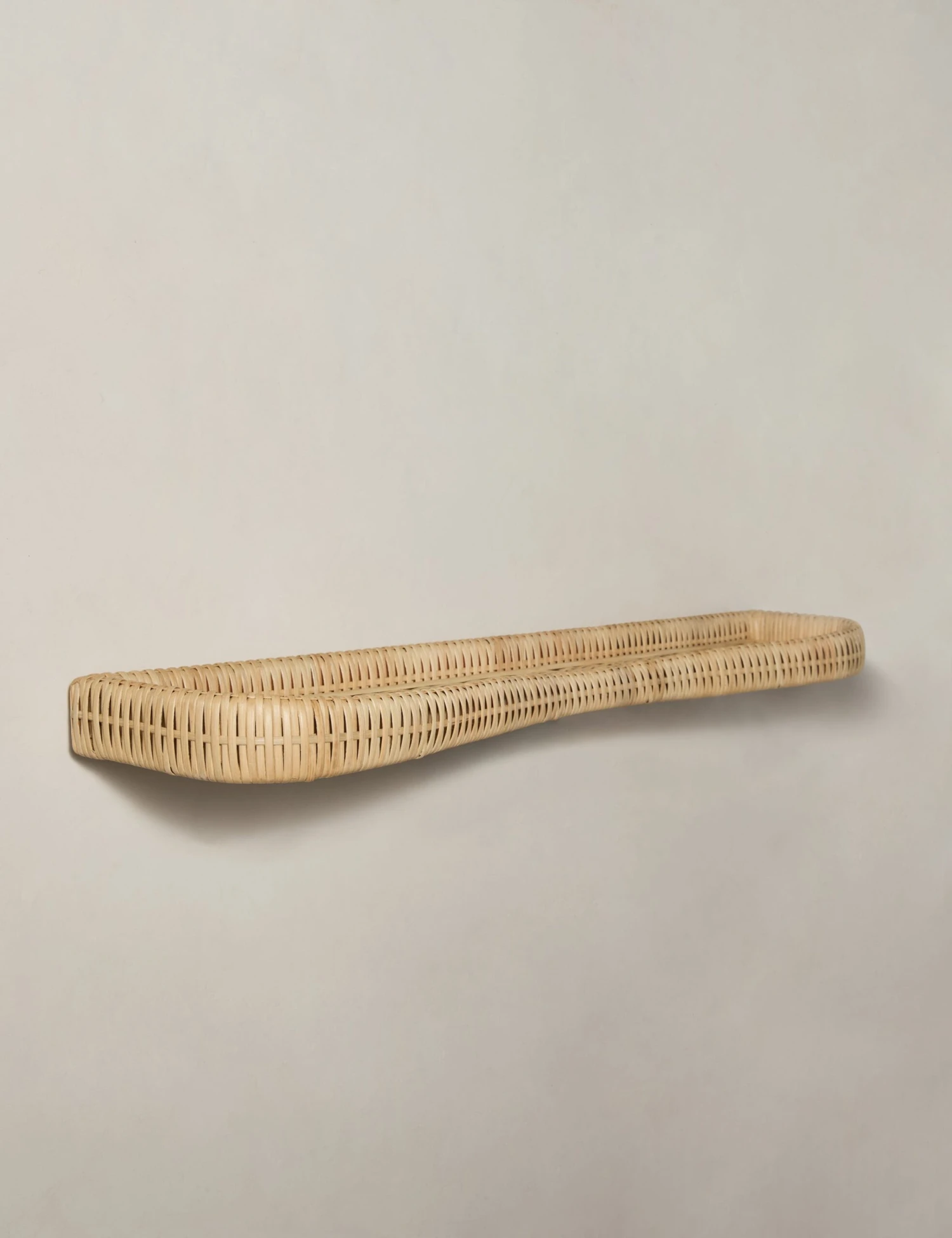 Elevate the essentials with artisan warmth. The Howell shelf brings a fresh touch to wicker with its handwoven design featuring a modern play of shape and all-natural rattan fibers. This shelf adds a touch of texture and dimension to your walls—perfect for stashing accessories and staging light decor in a bedroom, bath, or living space.