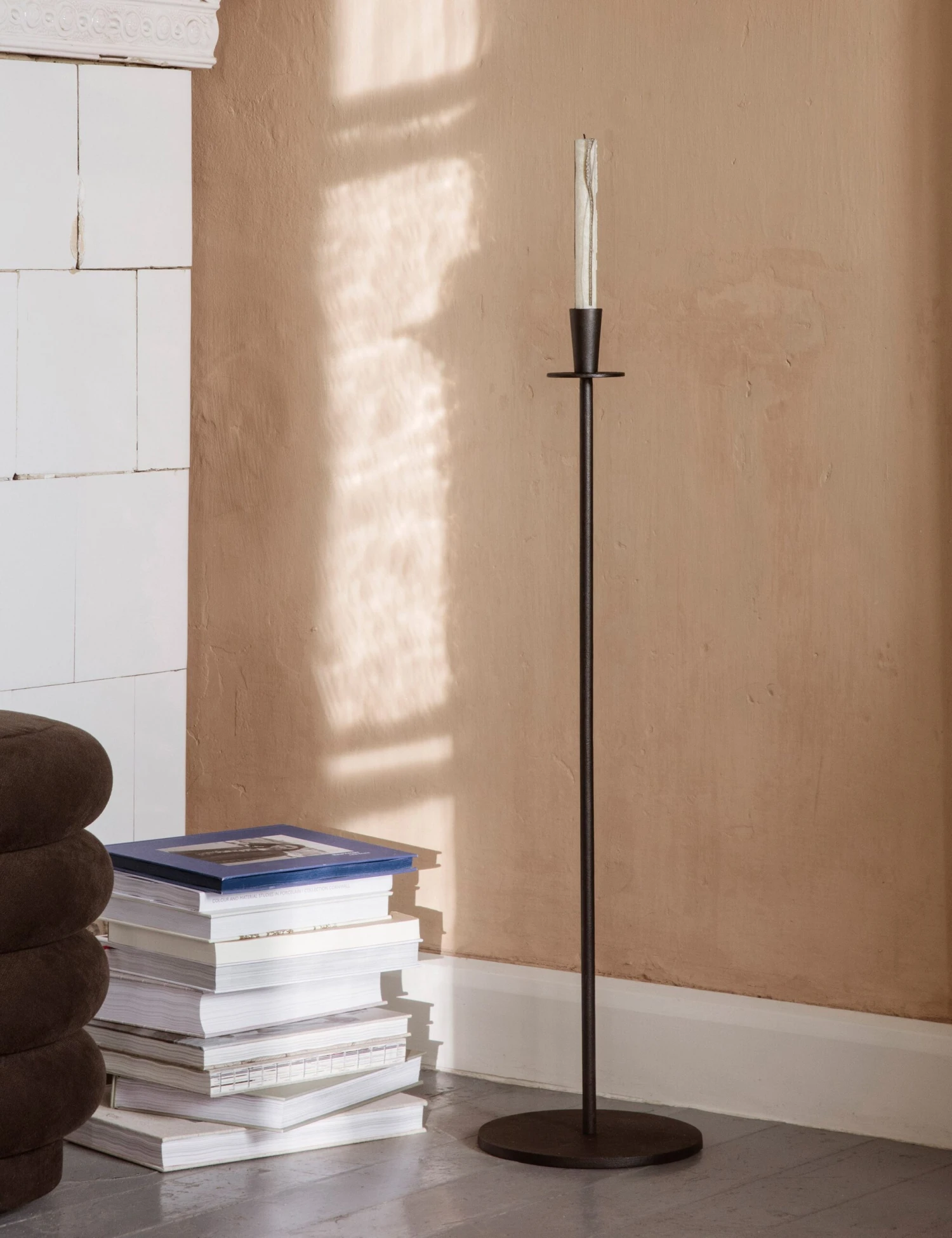 Bring a simple touch of light to the room with the Hoy candle holder. This cast metal holder features a spare, modern profile with a slender stem topped with a tapered socket and bobeche to catch wax. A raw matte finish brings an industrial edge to the design.