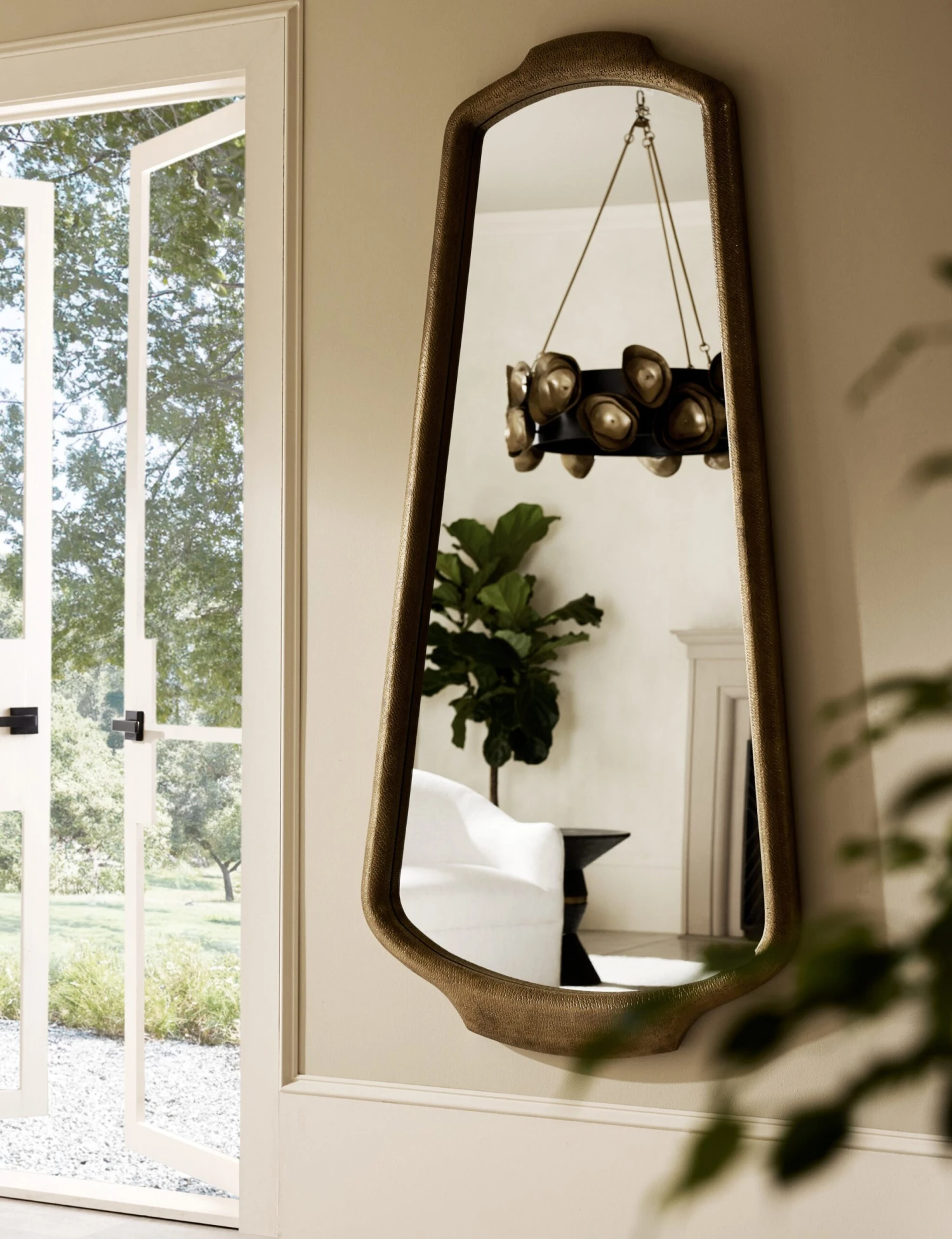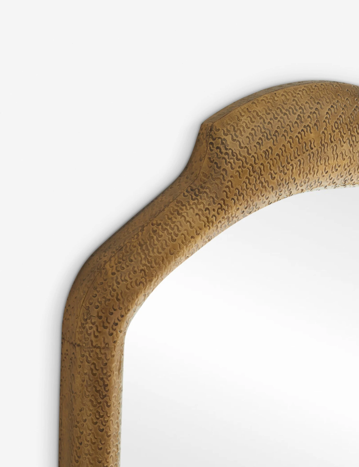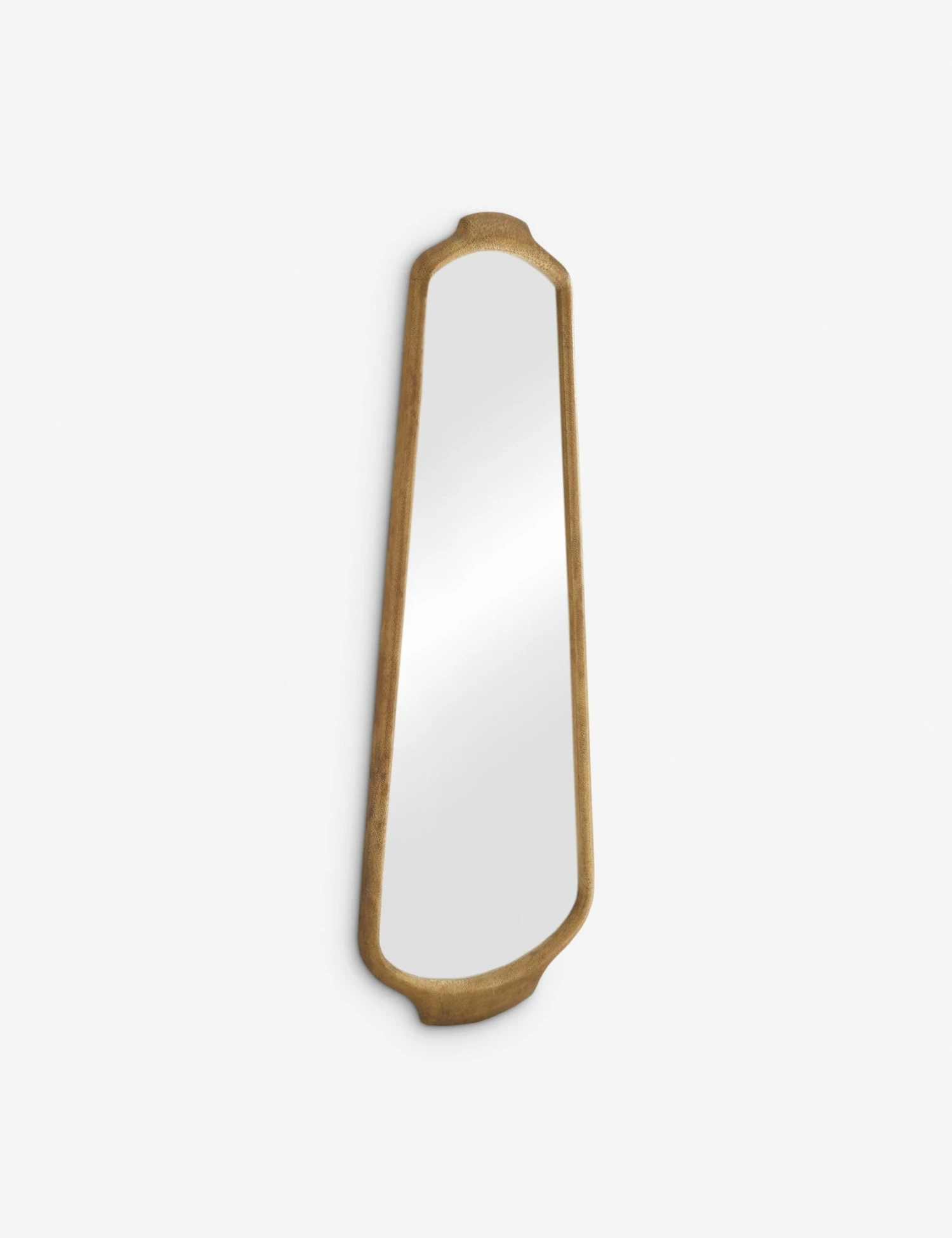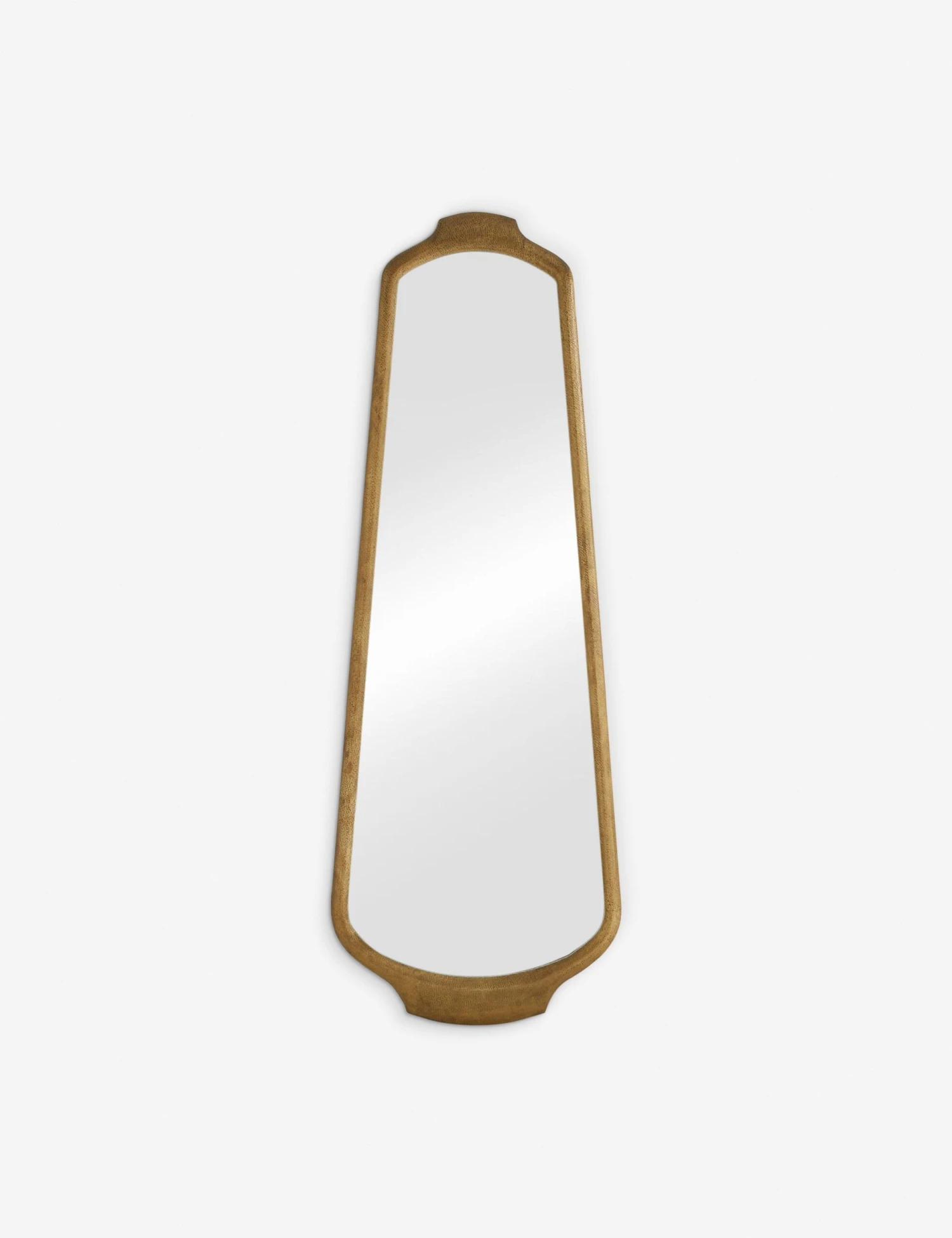With its full-length shield-style silhouette, the Hyland floor mirror brings a bold presence to any space. The bullnose frame features hammered detailing for artisan texture with a distinctly modern edge. Designed to mount vertically in either direction, this mirror anchors your wall with architectural drama.