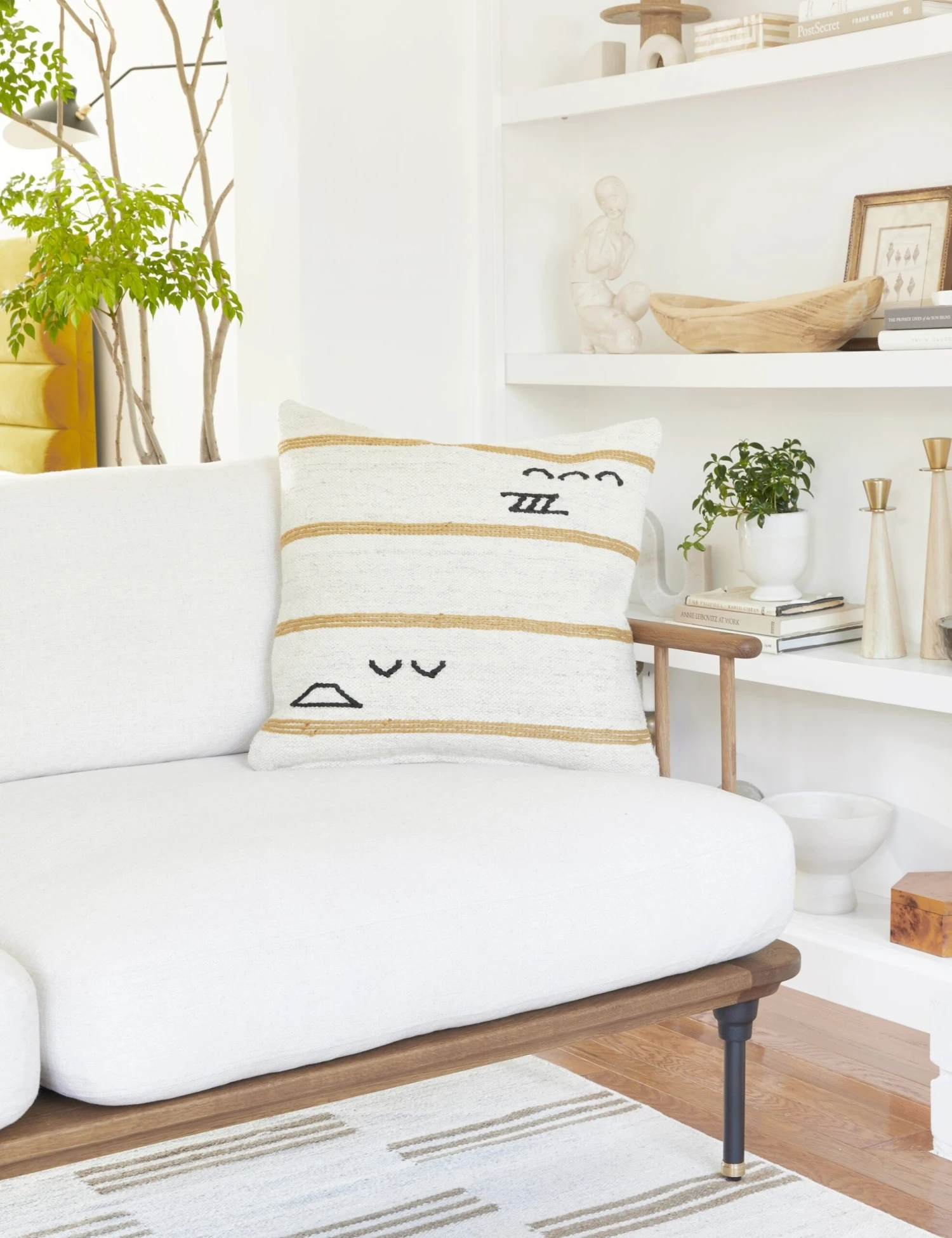 Inspired by vintage motifs the Iconic Stripe Pillow features thin stripes and small, modern symbols for a look that feels both familiar and fresh. It blends beautifully with other neutral and earthy tones like clay and sand. The Sarah Sherman Samuel Collection features tonal textures, earthy hues and a modern take on traditional patterns.