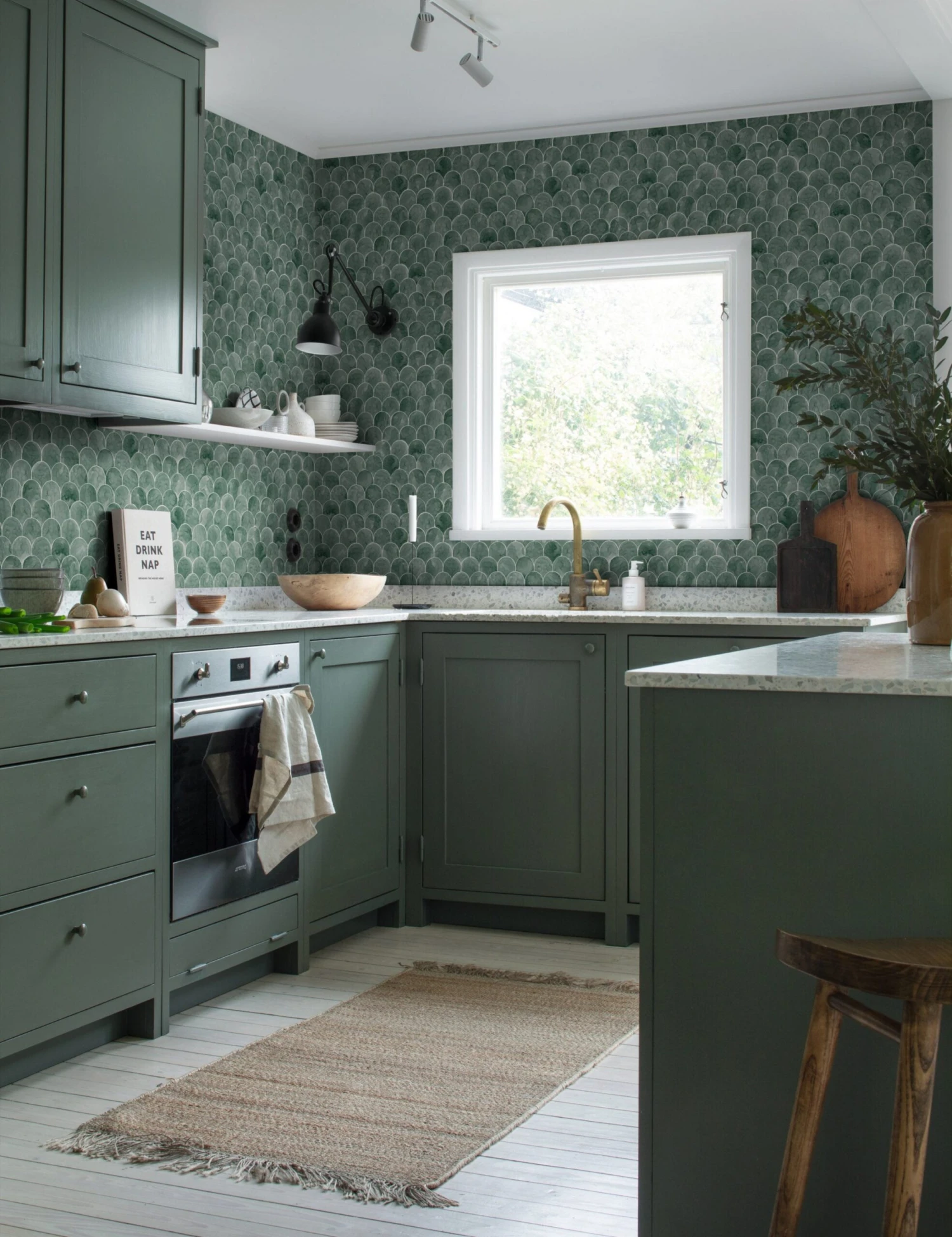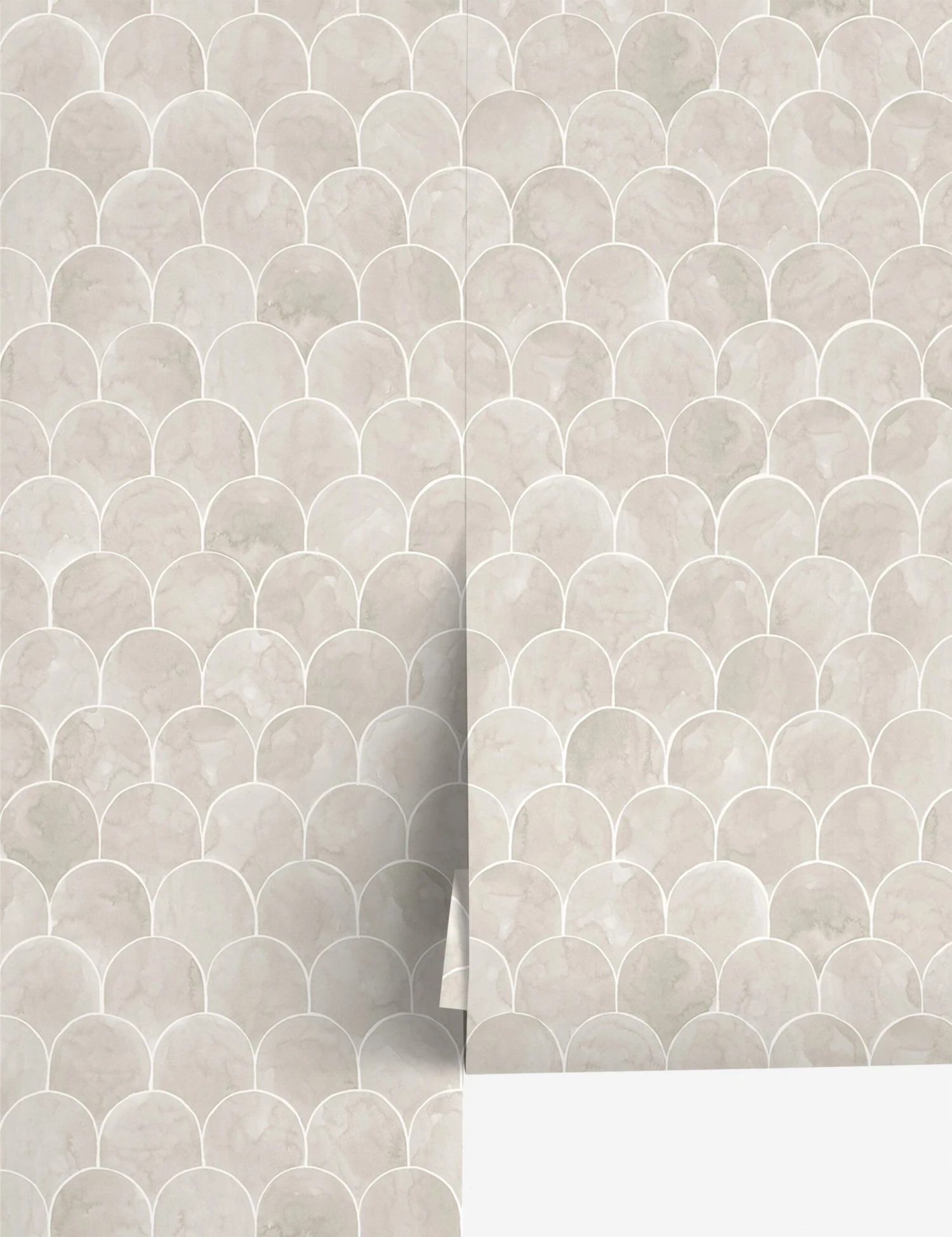 Style the space for soft impact. This wallpaper’s fish scale pattern inspires an Art Deco feel in a watercolor wash for a delicate dose of visual texture. We love this washable wallpaper for its calming aura in a bedroom, bath, or any living area.