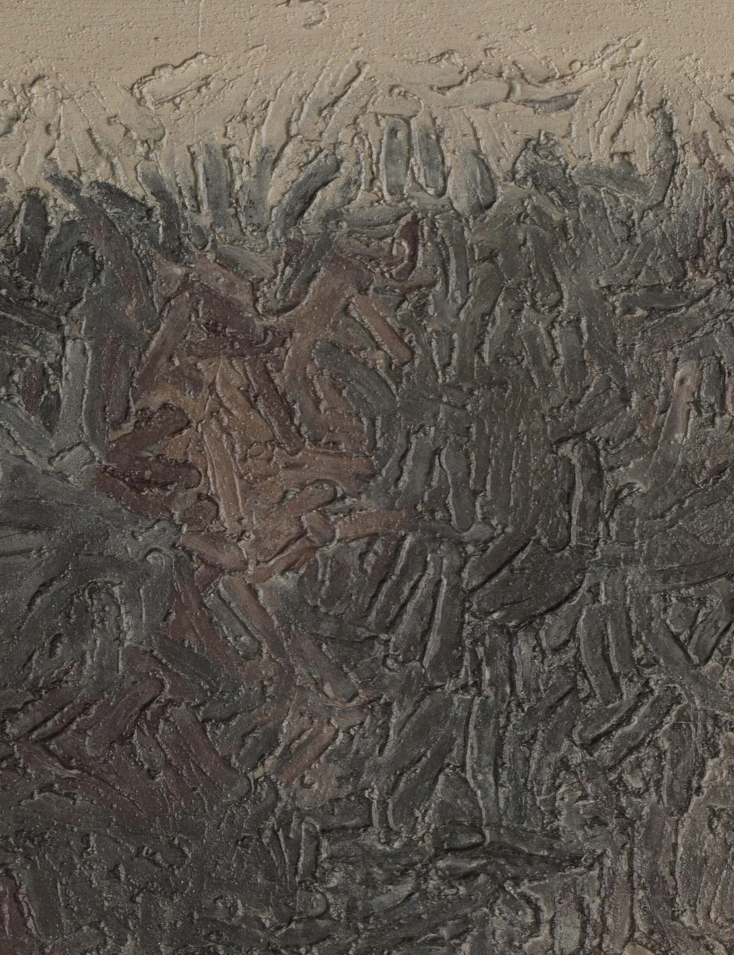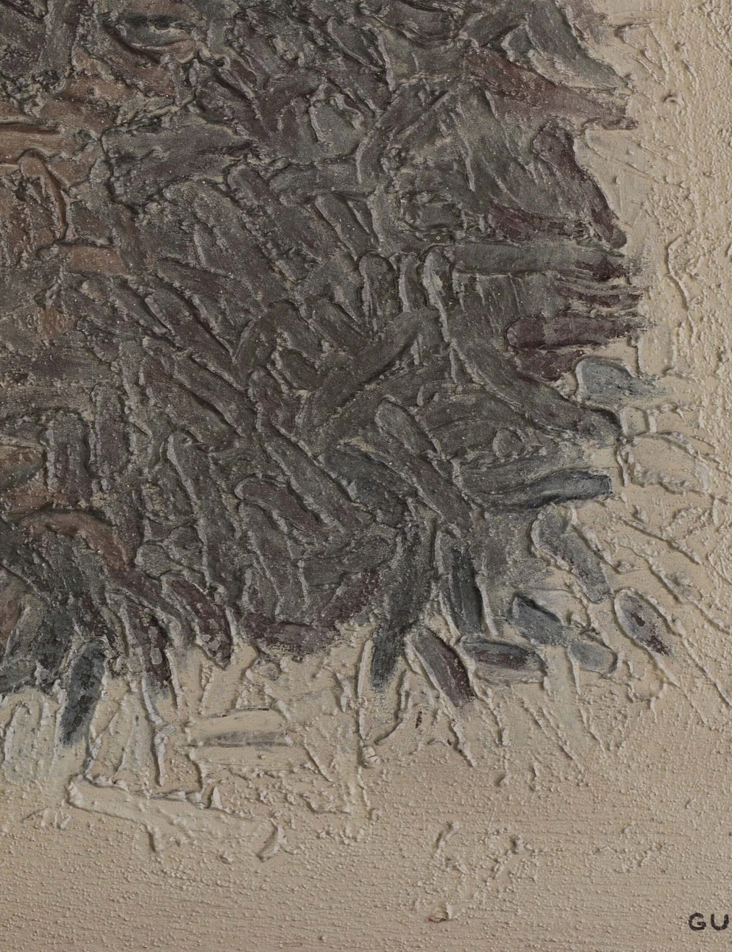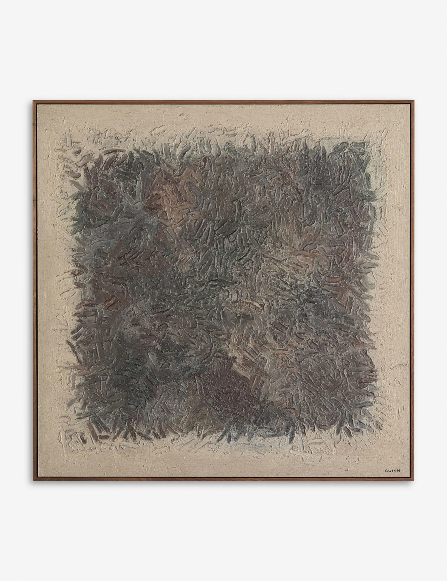 Artist Tyler Guinn creates rich, textural compositions marked by an organic sensibility. We love the dramatic depth in the overlapping brush strokes of this abstract artwork. Dark hues ground this dynamic piece with a quiet impact, perfect for modern wall decor.