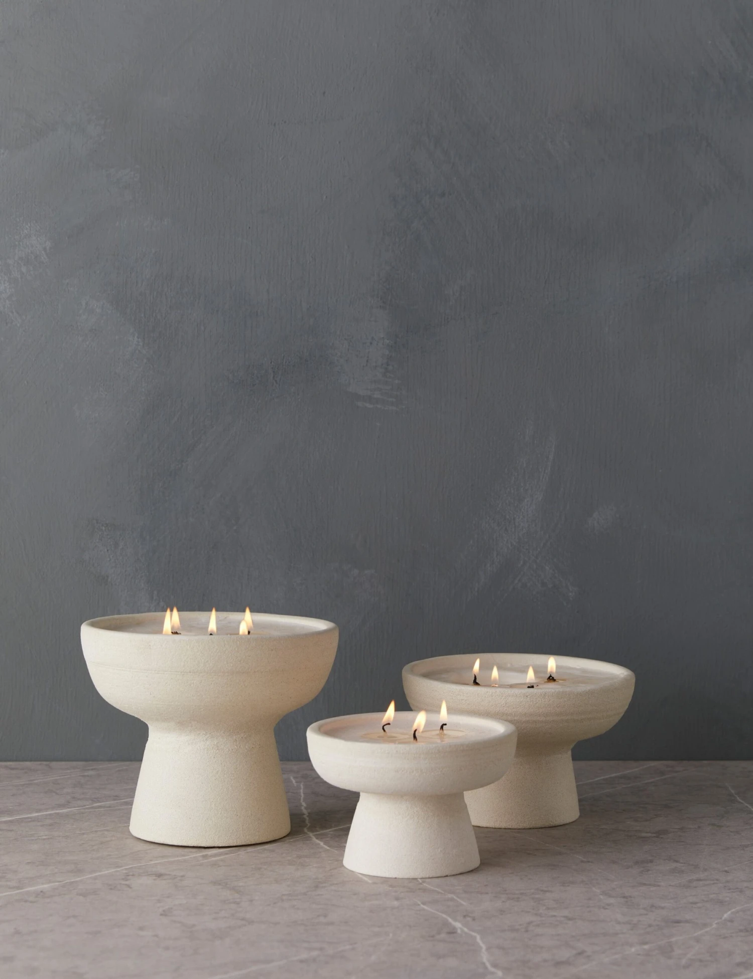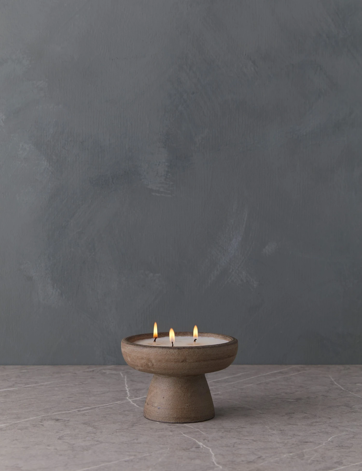 The raw ceramic texture of this pedestal candle offers a stunning candlelight feature for your entryway or living space. Once the candle has elapsed, the pedestal bowl can be refilled with a pillar or tea light candles or serve as a sculptural catchall on your entryway table.