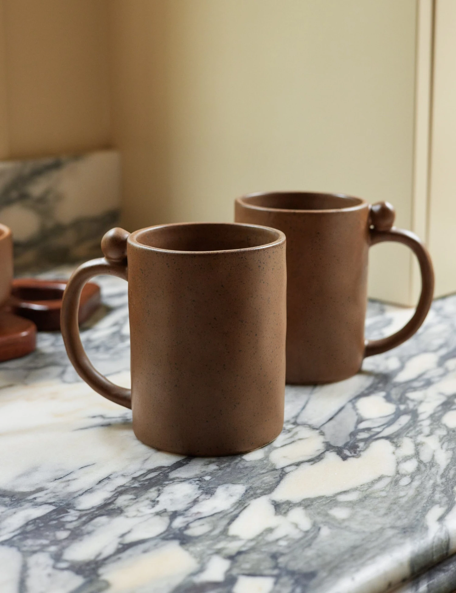 The Julep collection brings a striking play of shape to both kitchen and table with unique stoneware silhouettes handcrafted by artisans. The ball detail on these mugs adds the perfect touch of charm to your daily beverage ritual. This dishwasher and microwave-safe set is from our exclusive Sarah Sherman Samuel collaboration and features all the trademarks of her warm, edited style.