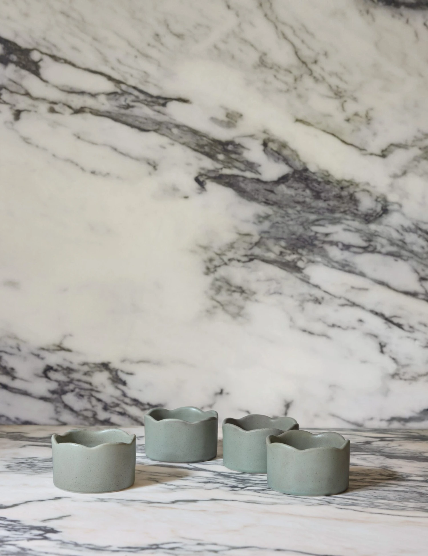 The Julep collection brings a striking play of shape to both kitchen and table with unique stoneware silhouettes handcrafted by artisans. These scalloped ramekins are perfect for serving nuts, olives, and sauces or blending spices while cooking. This dishwasher and microwave-safe set is from our exclusive Sarah Sherman Samuel collaboration and features all the trademarks of her warm, edited style.