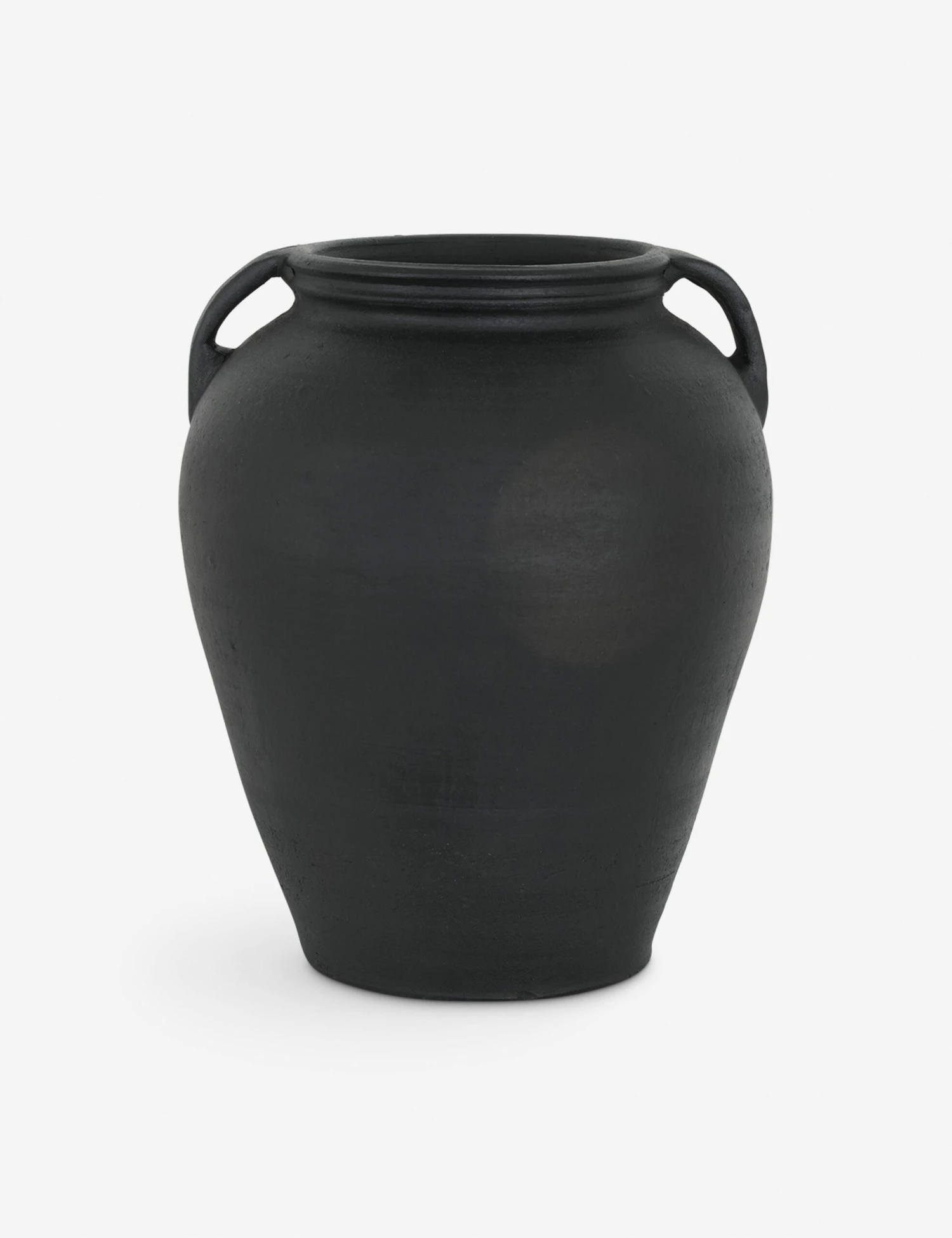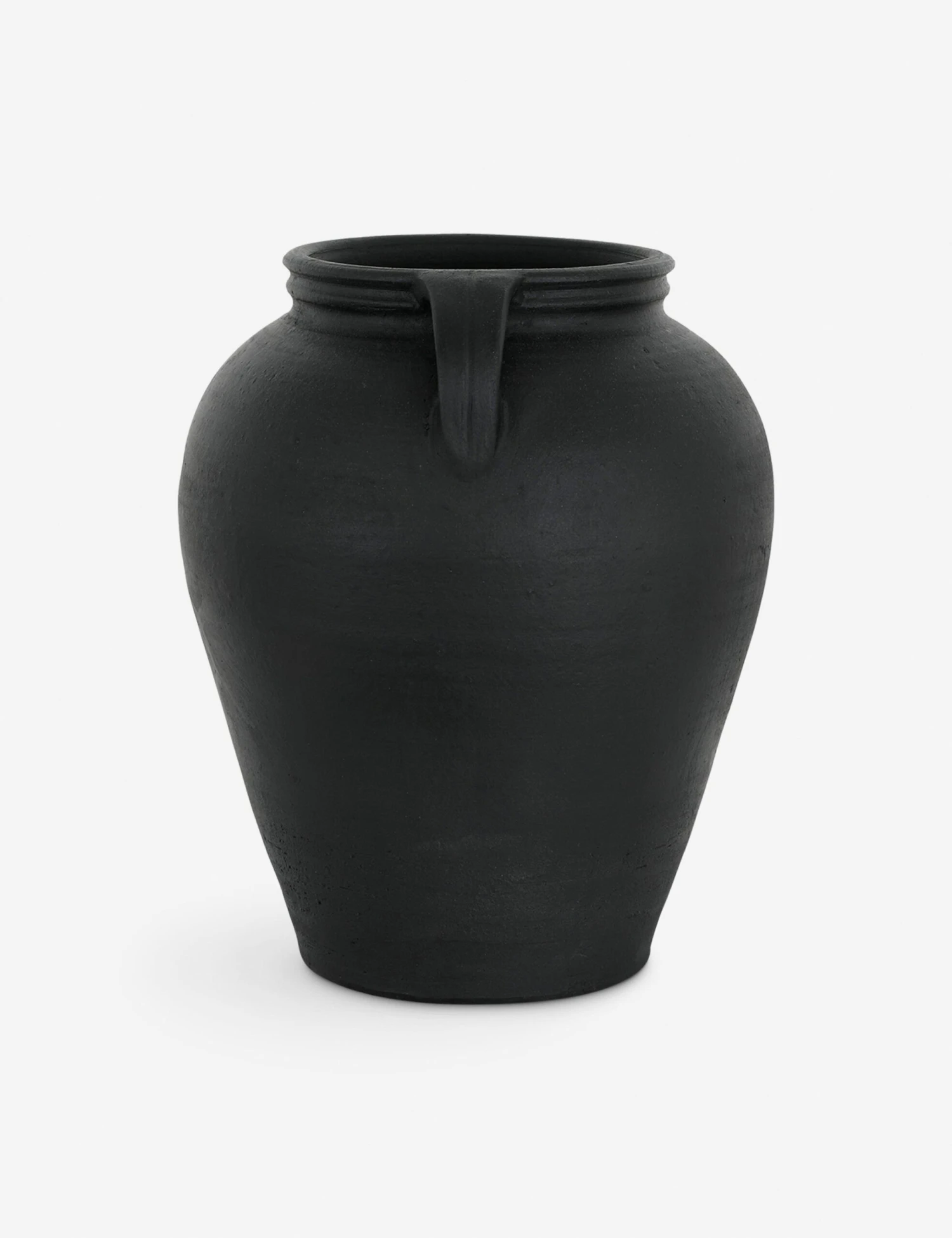 Punctuate your look with a timeless touch. This terracotta vase features a classic Greco-Roman silhouette, hand-thrown using traditional techniques. A bold black finish brings striking contrast—perfect for modern spaces.