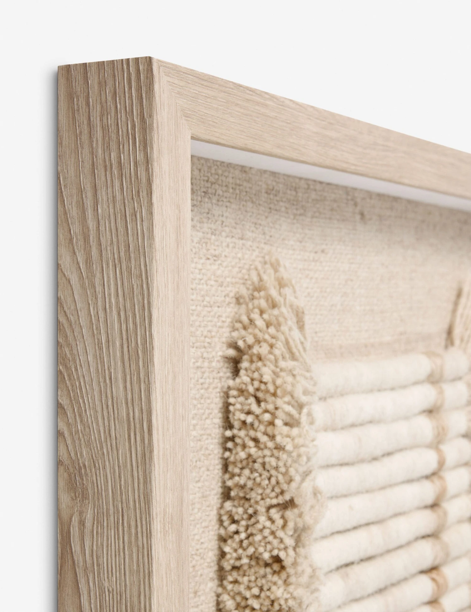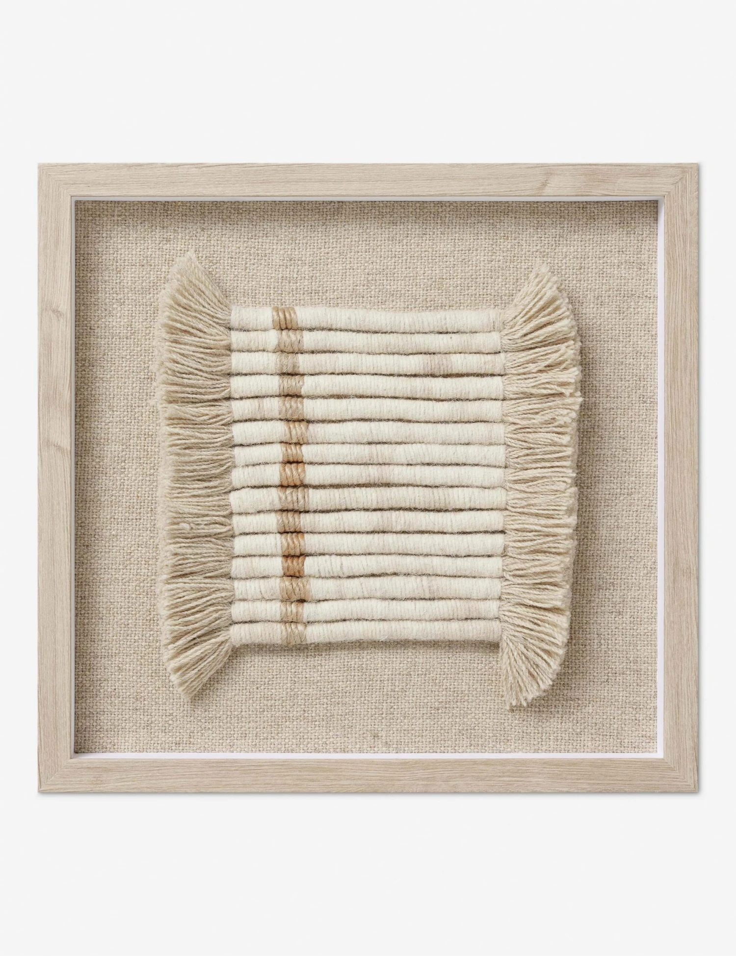 Add a burst of texture to your wall art collection with this framed textile art. The coiled weave features a loose fringe on either side offset by a single accent stripe. This piece offers a modern look rooted in timeless artistry, offering a grounding touch to transitional wall decor.