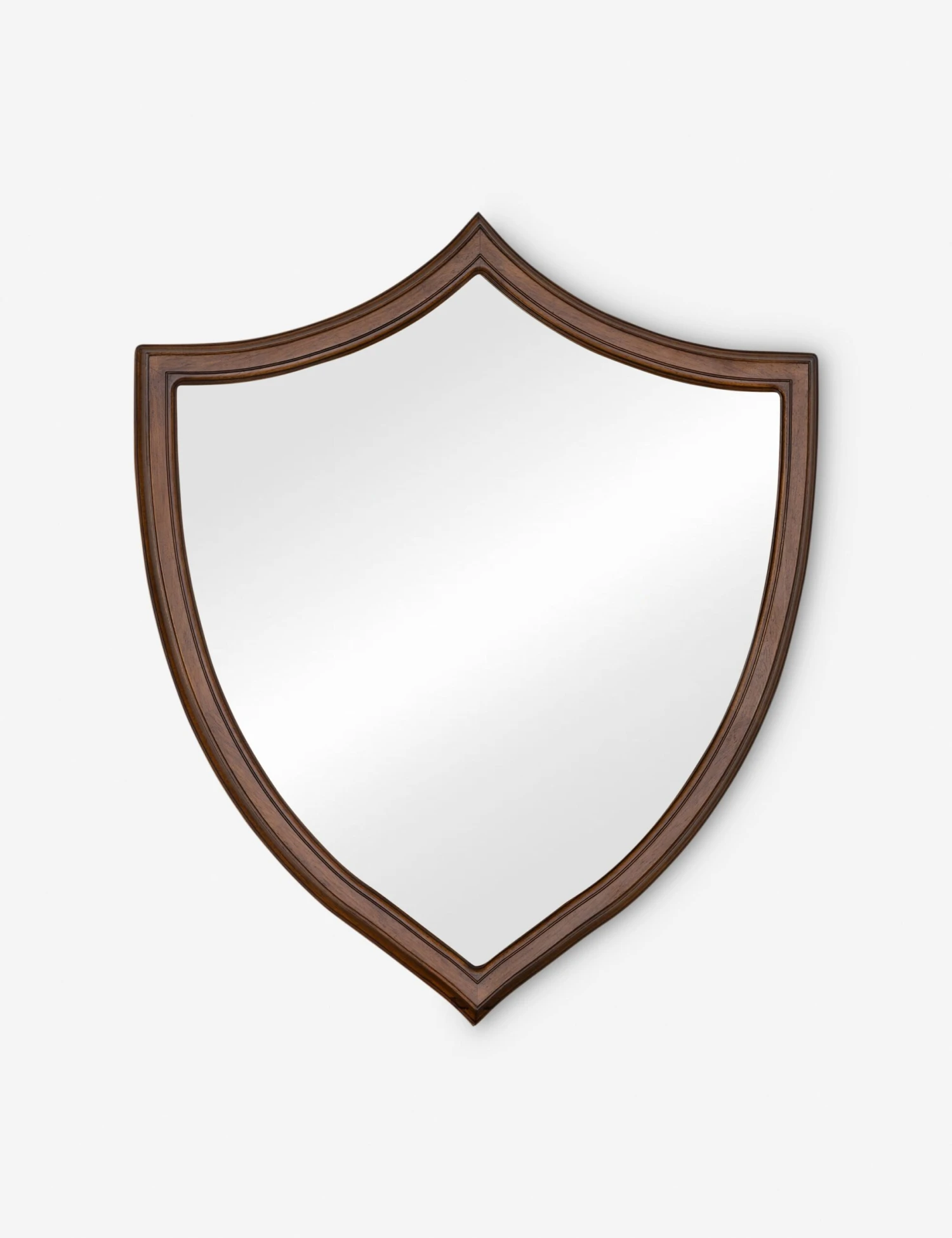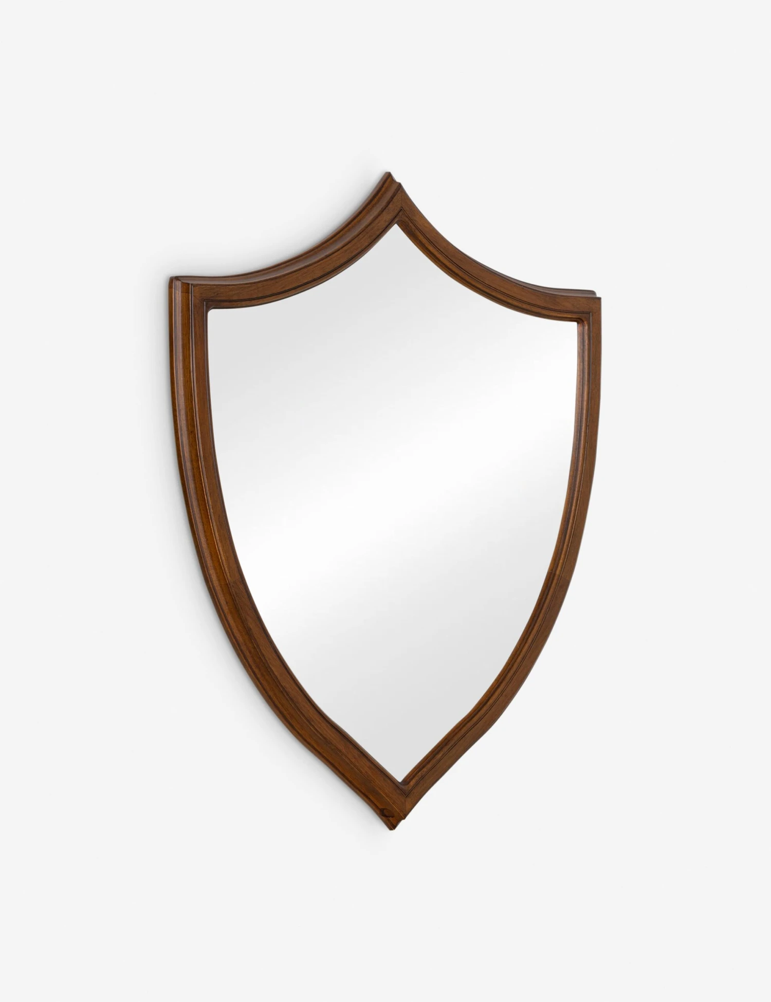 Classically drawn with a whimsical edge, the Kierse mirror brings a fresh take to traditional form. Its shield-like frame nods to vintage design with a warm mahogany finish, adding a clean-lined shape and a moment of depth to any wall.