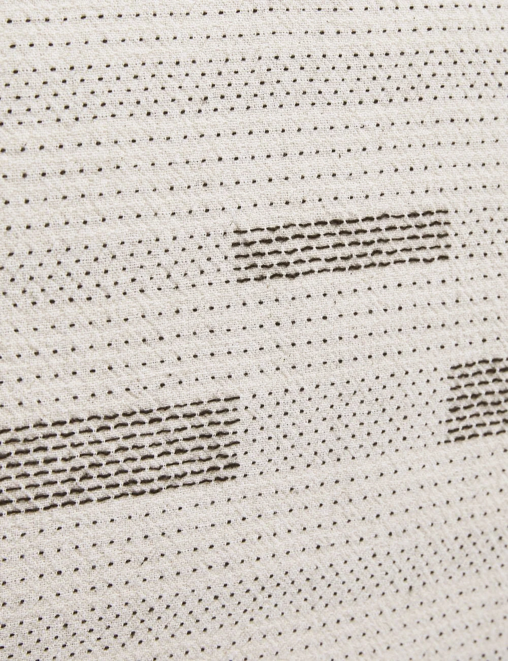 Throw a casual decorative pillow into the mix for an easy, California-casual look. Featuring Sashiko stitching on hand-loomed hemp, this throw pillow is both sustainable and durable.