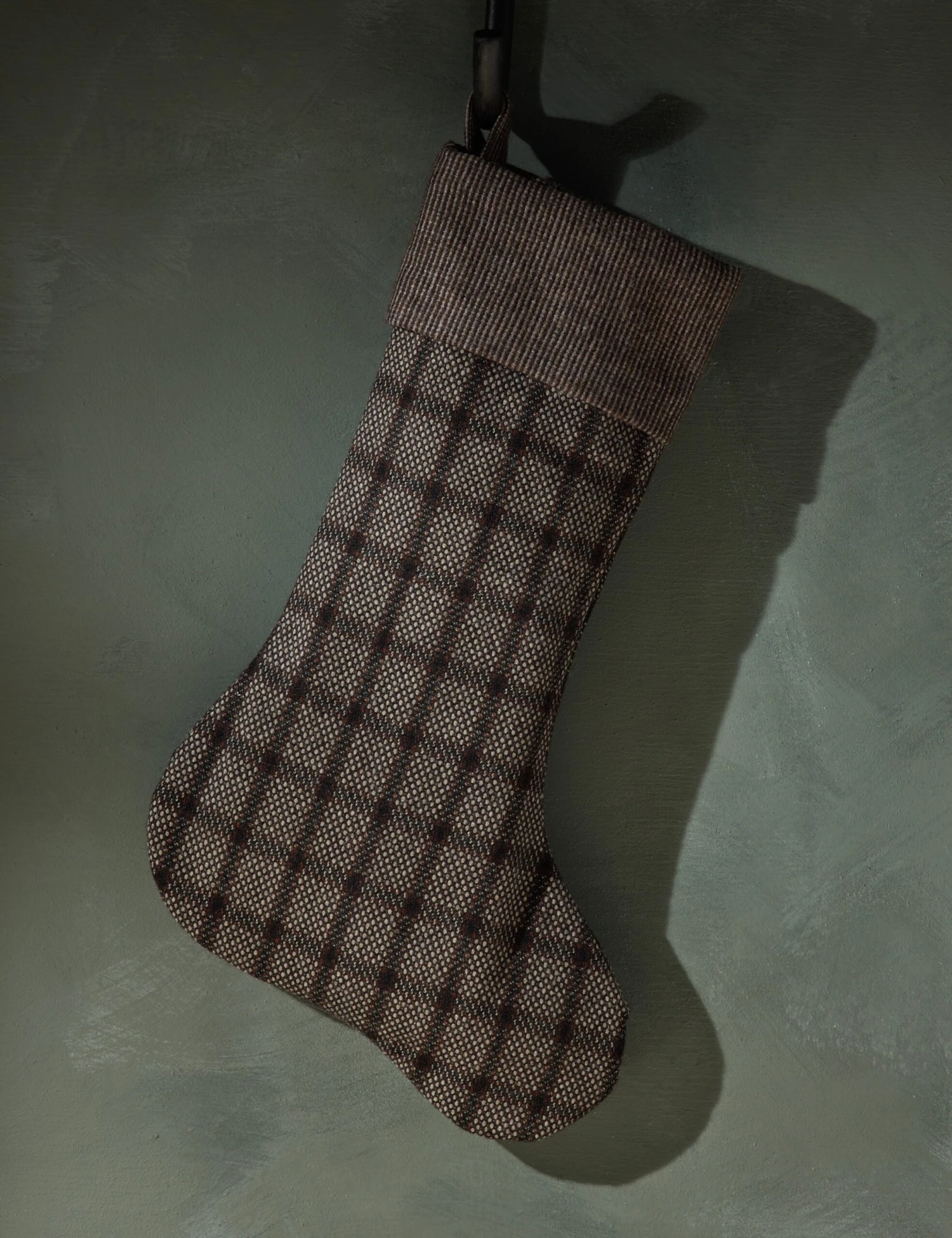 Style your look in warmth this season with a chic stocking in a striking plaid pattern. The striped trim sets off this classic-inspired wool design with a stylish appeal that will ground your look with the comfort of wool.