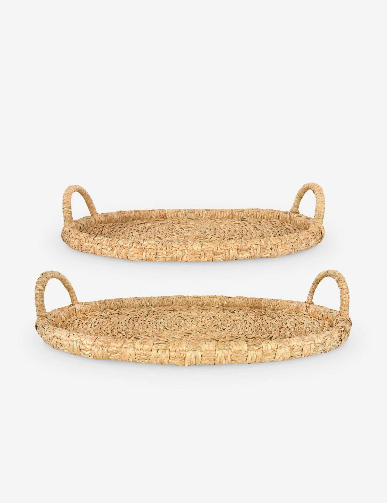 Beauty is in the details. These woven trays layer in natural texture with a functional touch—whether serving as an entryway catchall, grounding tabletop decor, or loaded with a cup of tea. We love the tactile combination of the rattan and seagrass, offering a burst of organic warmth with a refined oval silhouette.