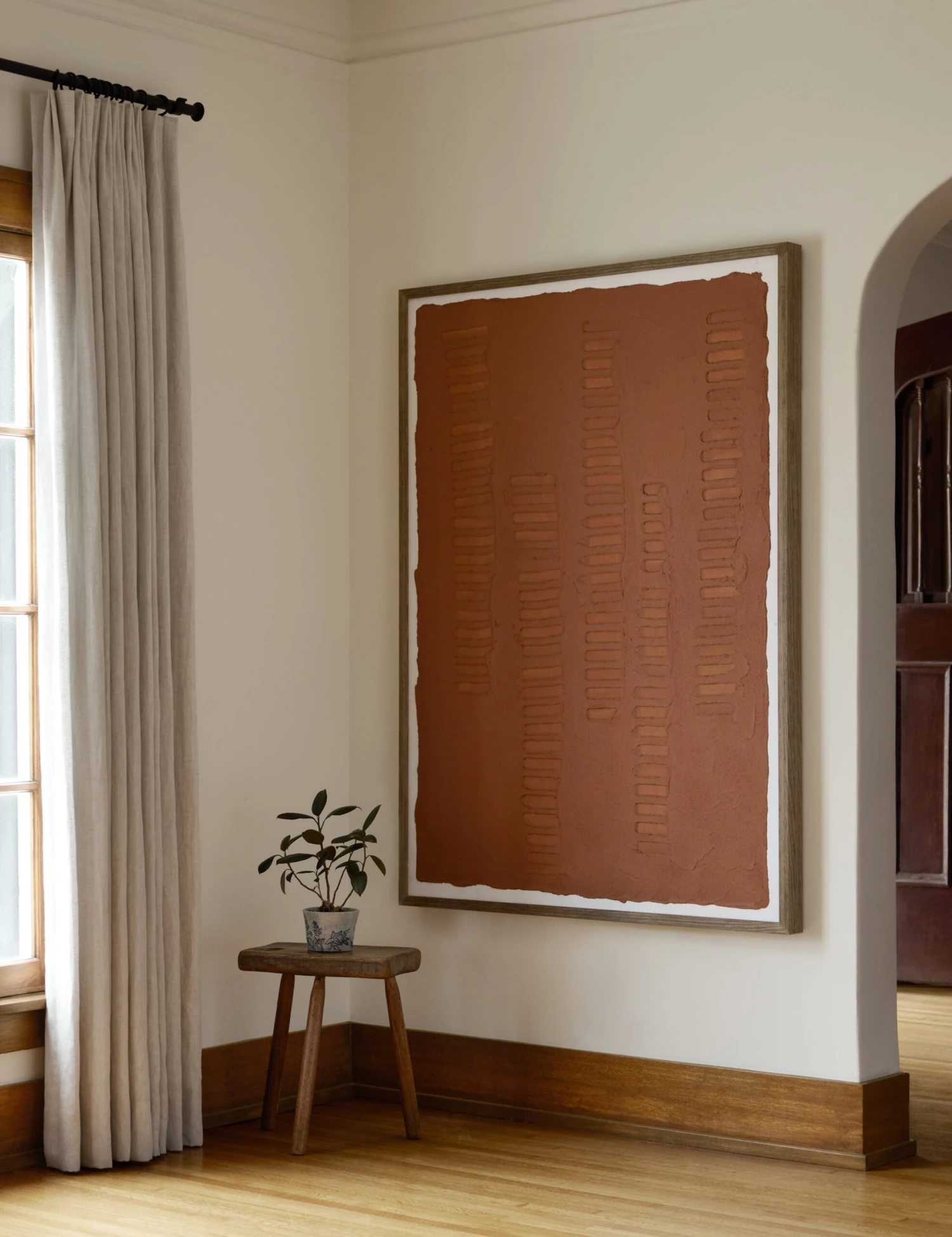 The Left Right wall art series by Danielle Davis features a minimalist composition that groups organic marks into a tidy array. With its warm clay tone, Left Right II brings a grounding quality to your wall decor. Each piece creates a beautiful feature on its own or can pair for statement appeal.