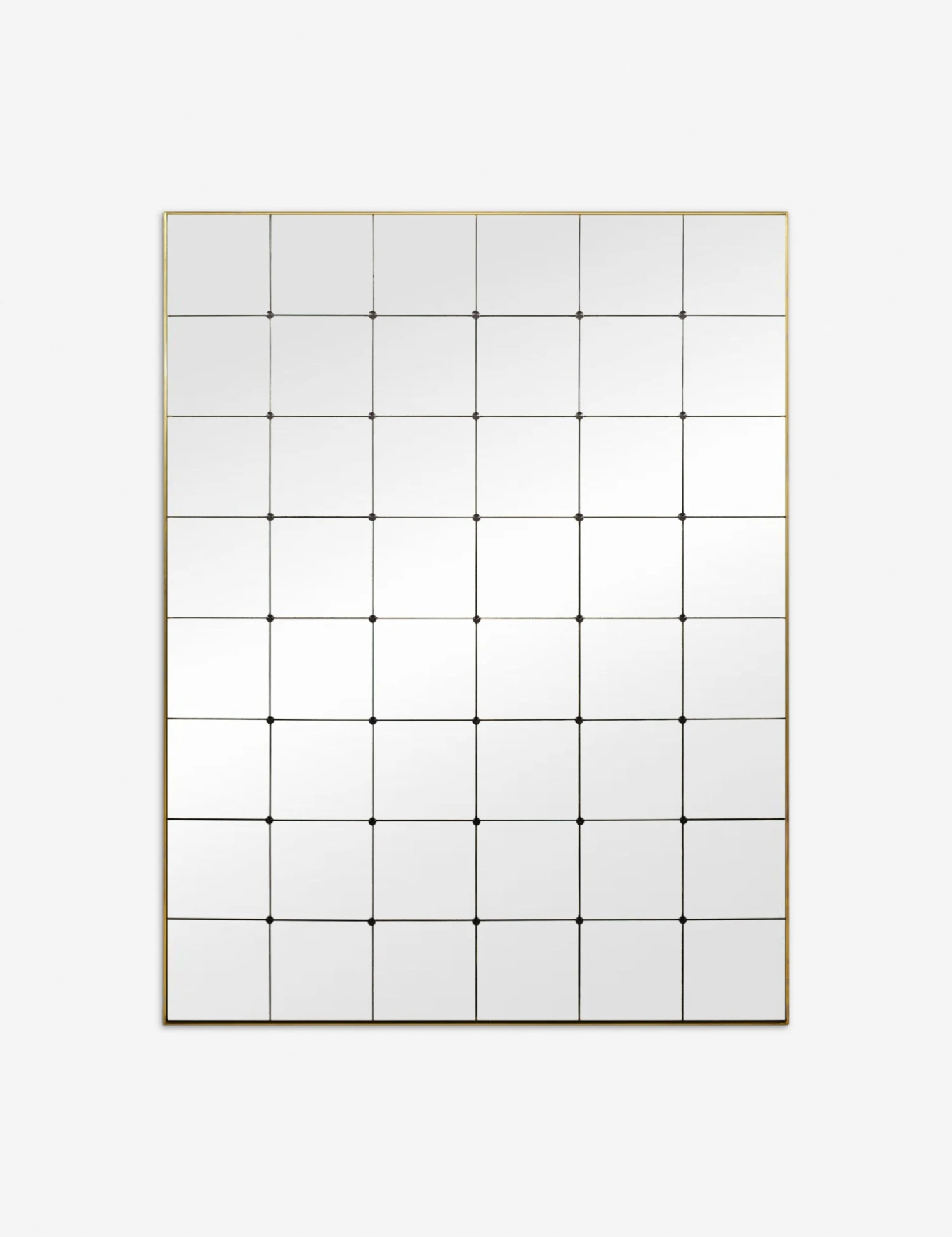 The Linke mirror blends vintage character with a modern edge. Its black metal frame divides the surface into a windowpane grid, while antiqued glass adds depth and a softly weathered finish. Style this full-length mirror in a bedroom, hallway, or living space to layer architectural drama and a sense of scale into your wall decor.