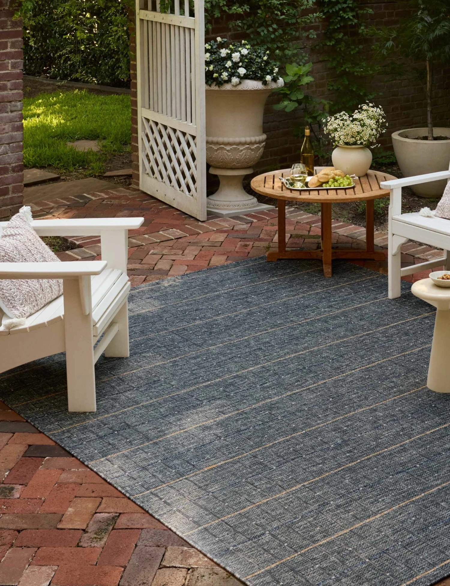 The Maelle rug is set to elevate your style with a fresh foundation indoors or out. This easy-care rug underpins your space for practical appeal with its no-shed construction and durable polyester fibers. The cool tone and subtle linear design bring a chic touch of pattern underfoot.