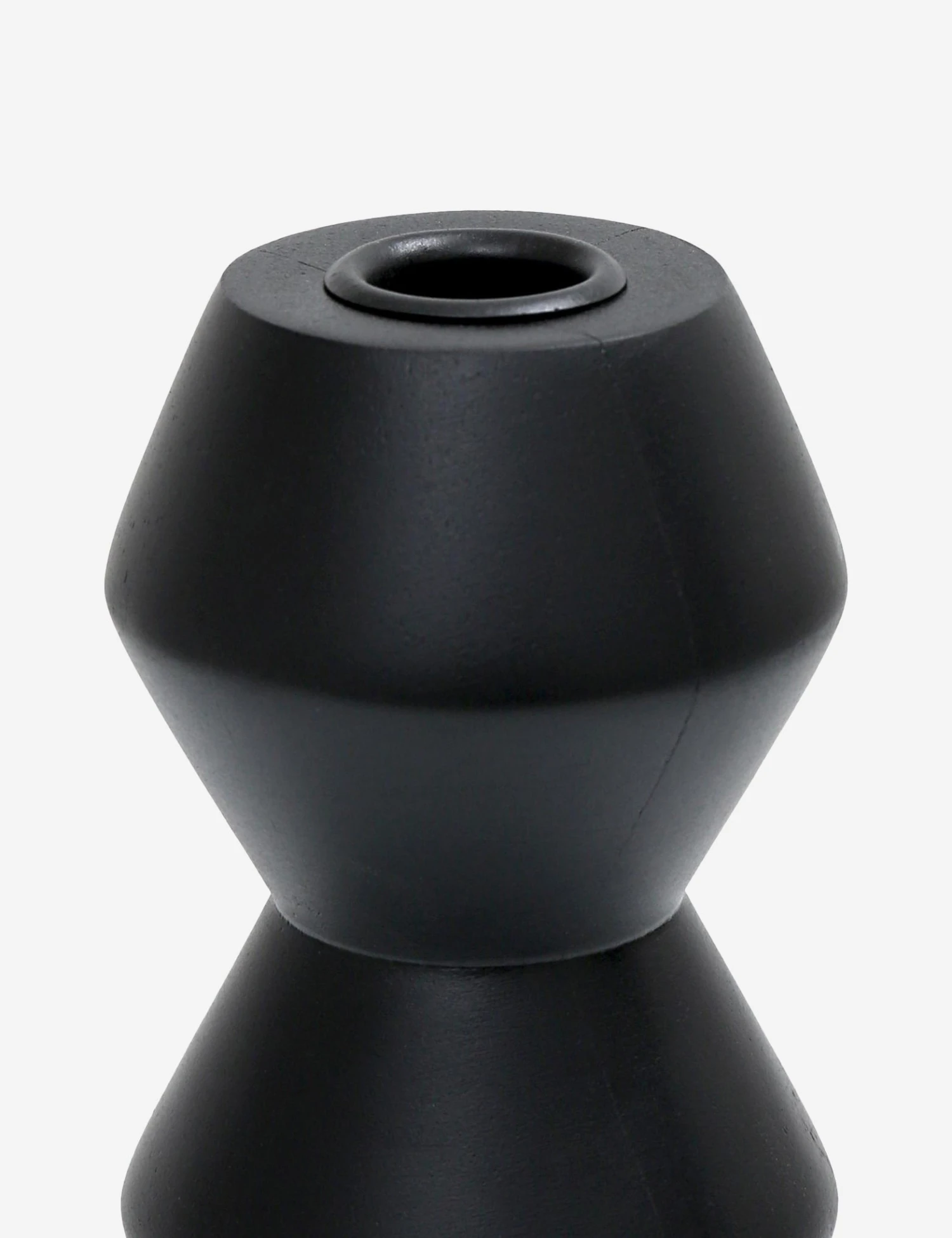 Beautiful wood meets geometric design in this modern candle holder. Its angularity offers an intriguing contrast in tabletop displays that creates a warm ambiance with a taper candle.