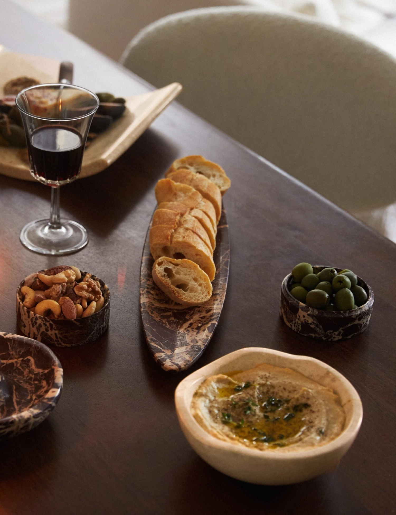 We are thrilled to bring you an exclusive collection designed by Chloé Crane-Leroux with Anastasio Home. Anastasio Home works with craftspeople around the world to bring limited-run accessories and upcycled luxury goods to your home. In this collaboration, Chloé brings her keen eye and minimalist touch to a range of beautiful marble objects for kitchen and decor, each made by skilled artisans from a single piece of stone. With its organic shape and thick walls, this marble bowl serves salad or sides with sophistication.