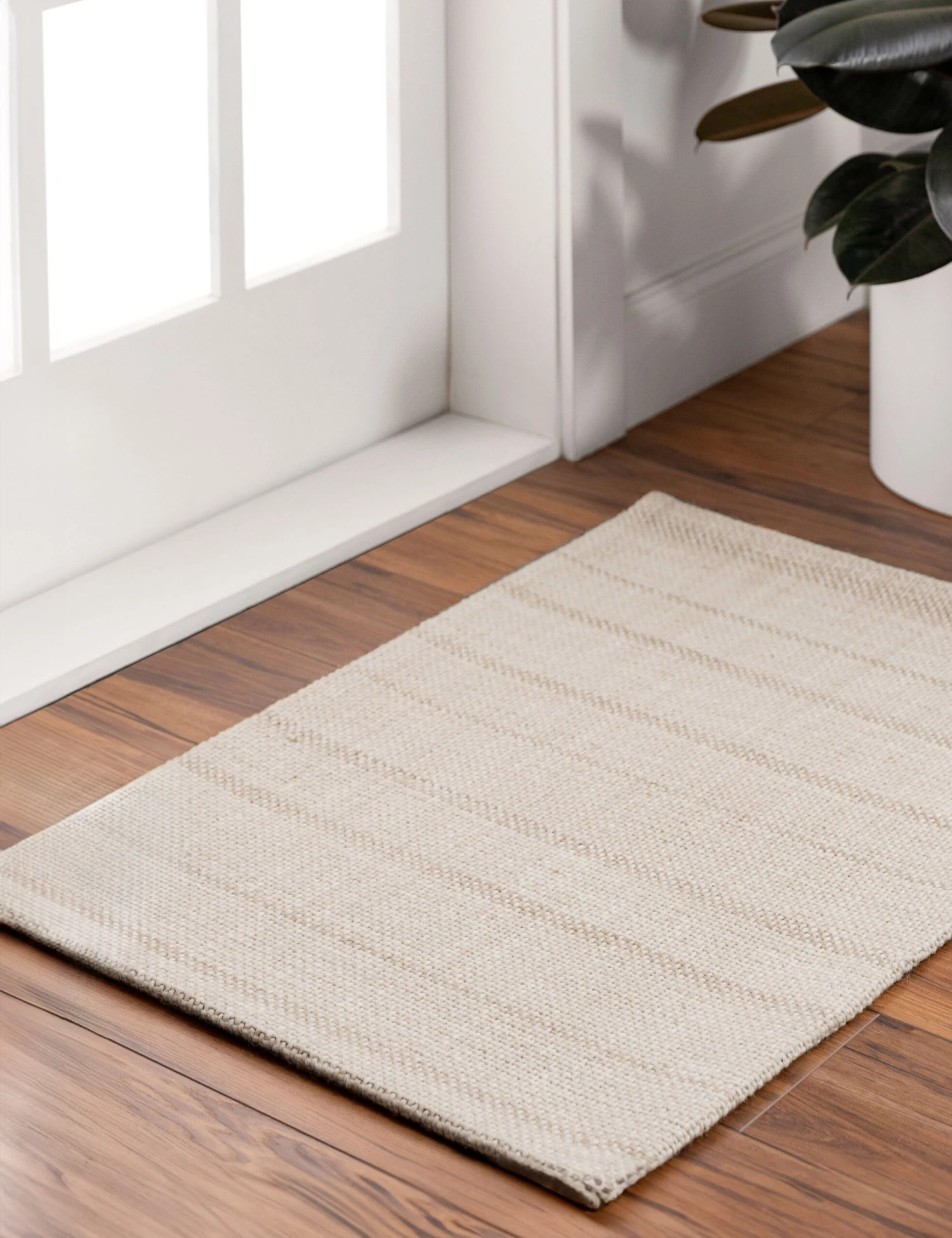 Lay new texture into your design with this handwoven rug. The wool-viscose blend gives it a soft, tactile tread underfoot with simple stripes in a light, tonal palette for brightening up a laid-back curation.