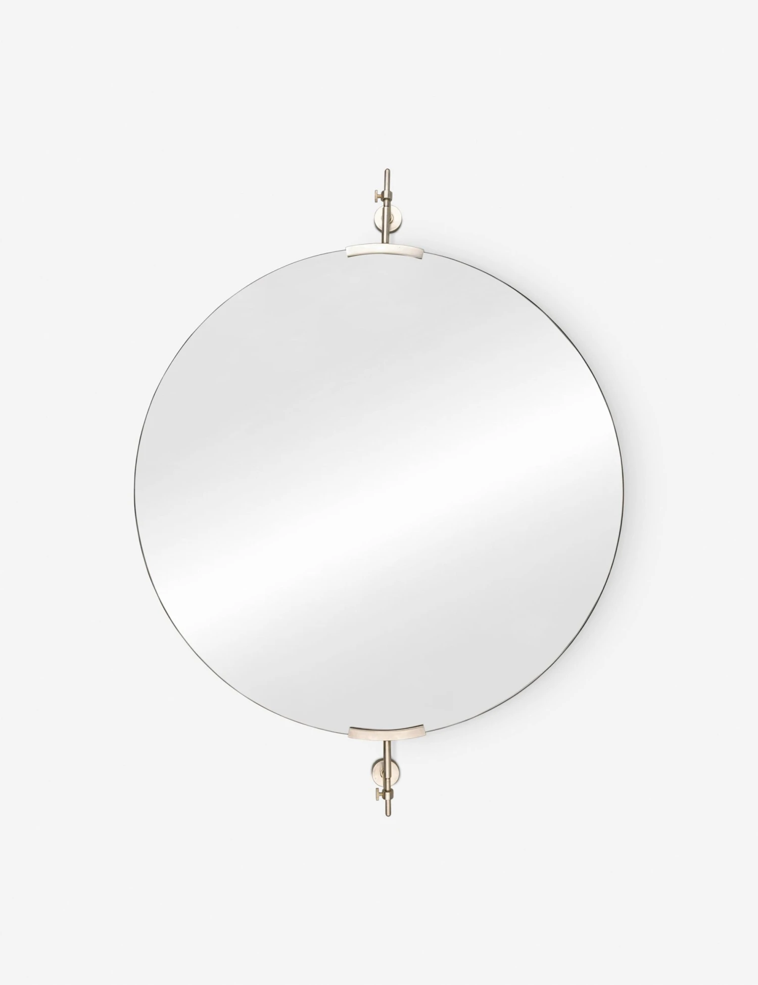 The Melle mirror styles vintage inspiration with a modern edge in its sleek yet striking design. Metal brackets offer an industrial detail while the round glass sets the look for soft impact. Place this accent mirror in a powder room, entryway, or living space for a timeless touch of polish.