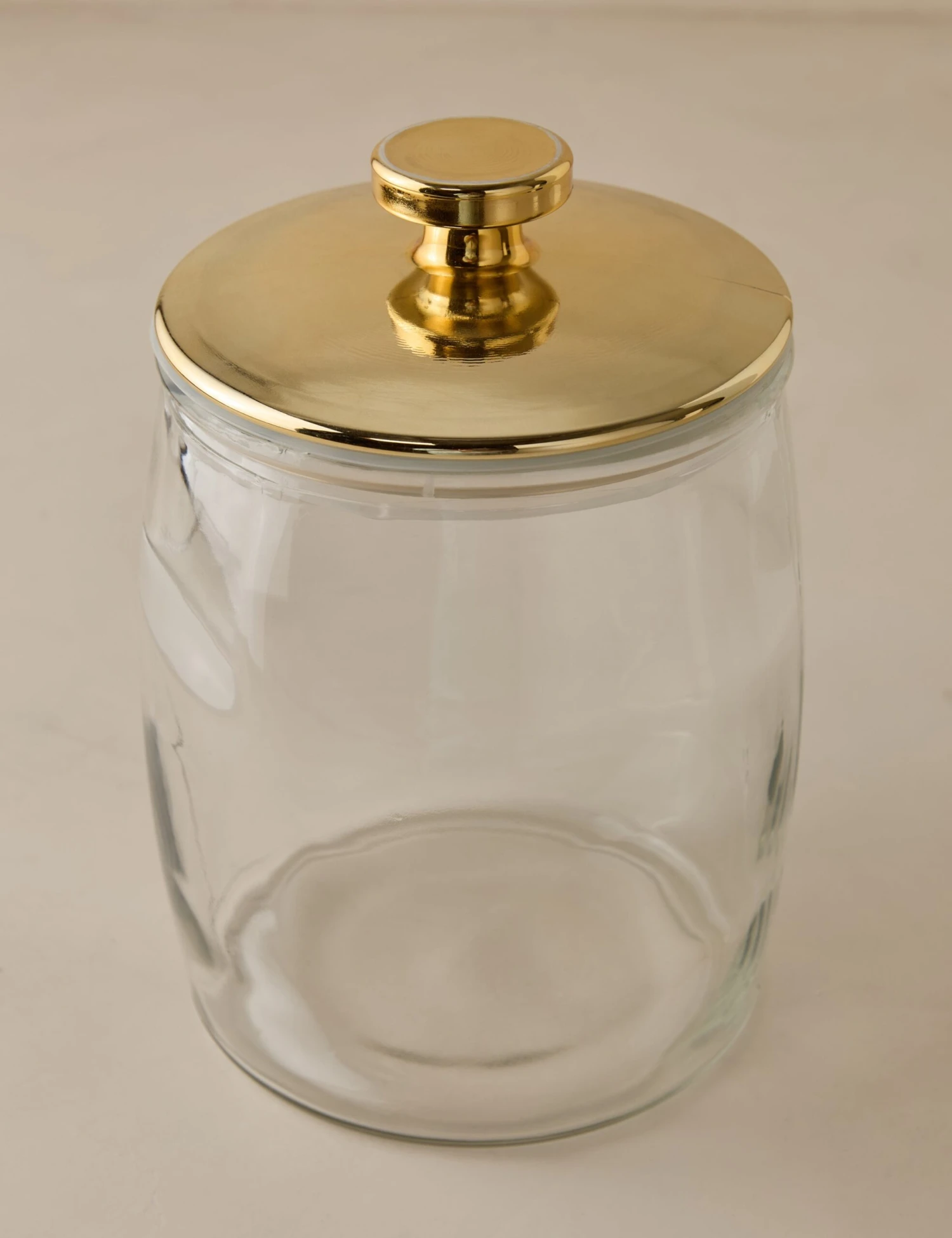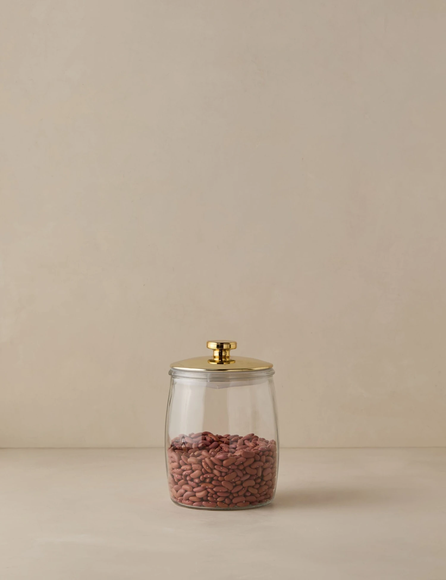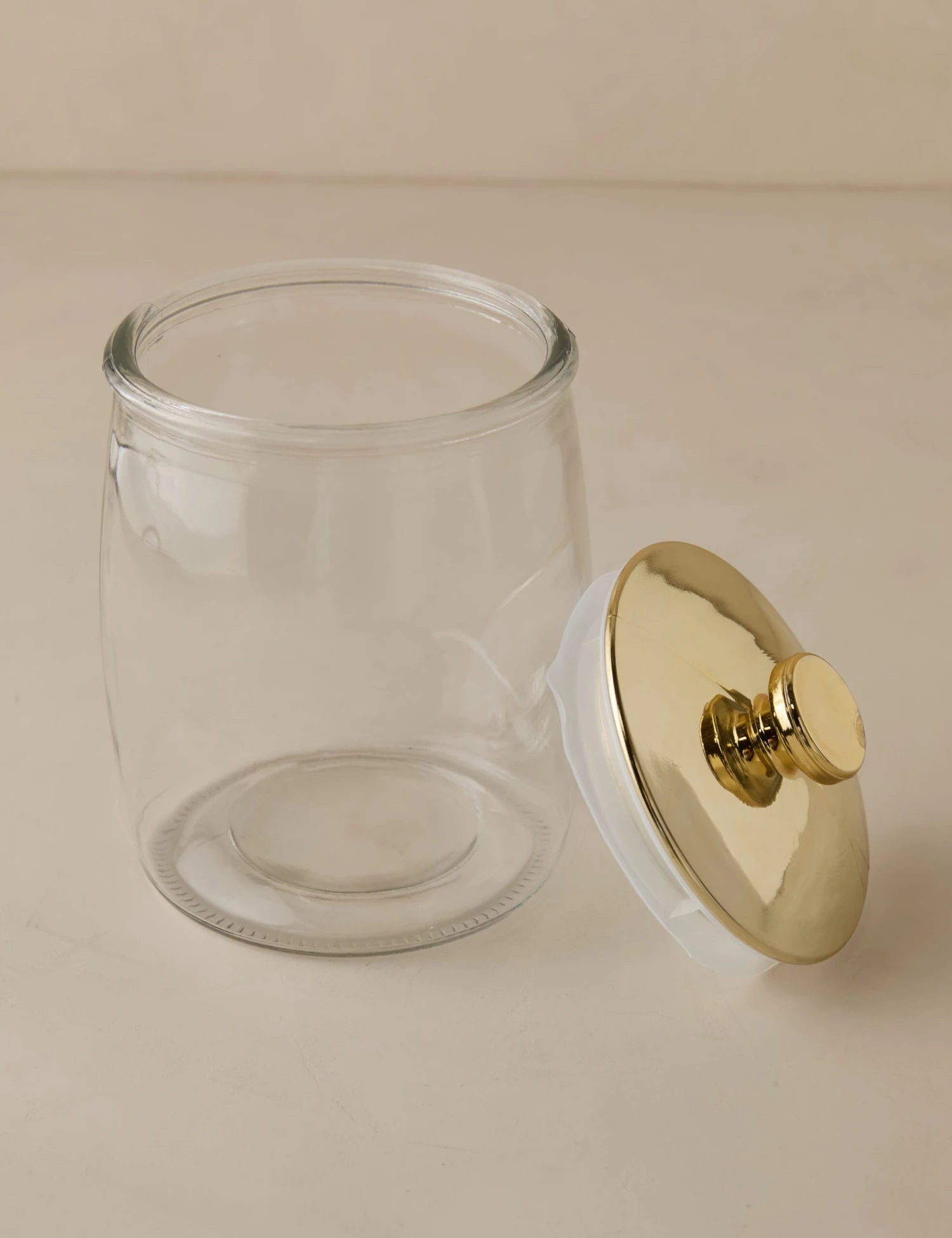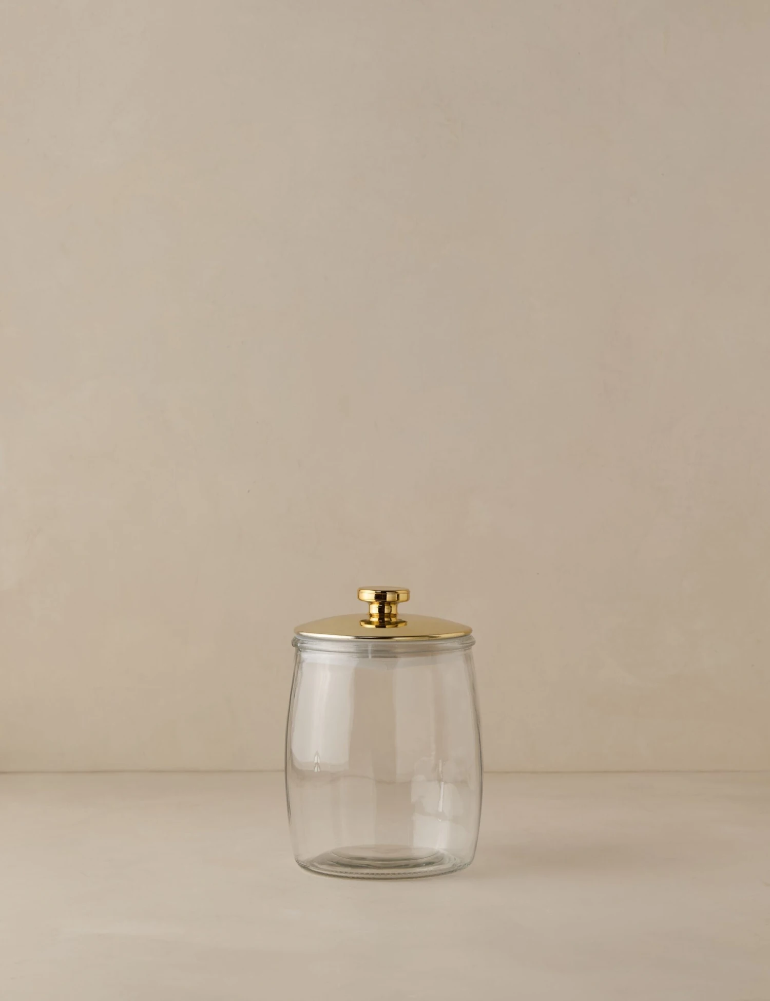 Organization elevates the essentials, and InterDesign makes it effortless with modern solutions that style seamlessly into your space. This lidded glass jar offers a versatile container for everything from corralling essentials to keeping kitchen staples handy. We love the touch of polish the brass lid brings to countertops and cabinets alike.