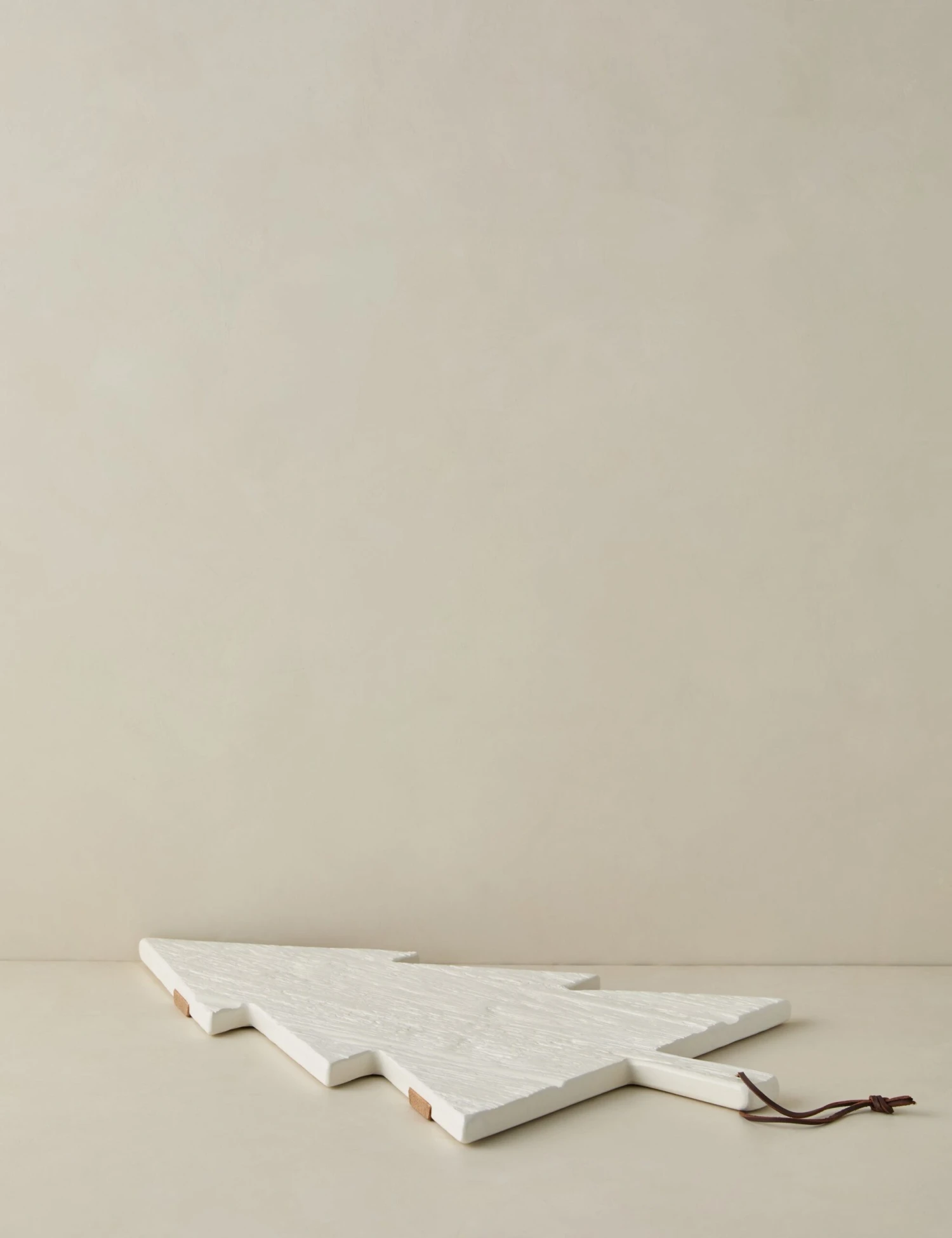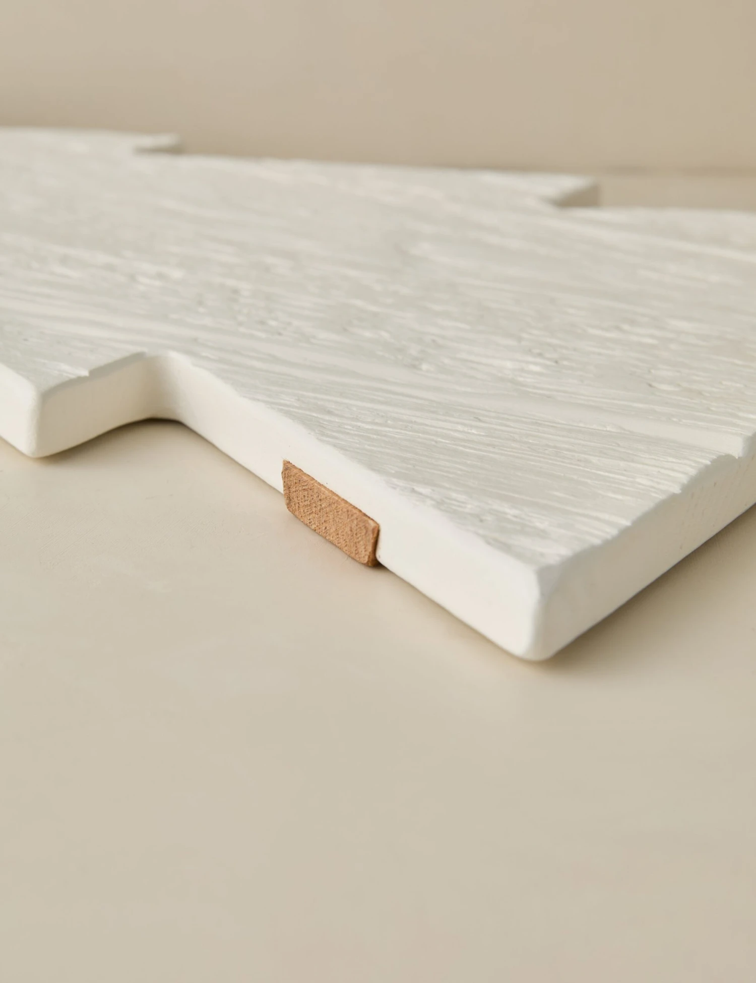 Add some evergreen flair to your hosting with this festive tree-shaped cutting board. The wood design is finished in white with natural accent strips, offering a touch of mid-century style to set off any culinary curation.