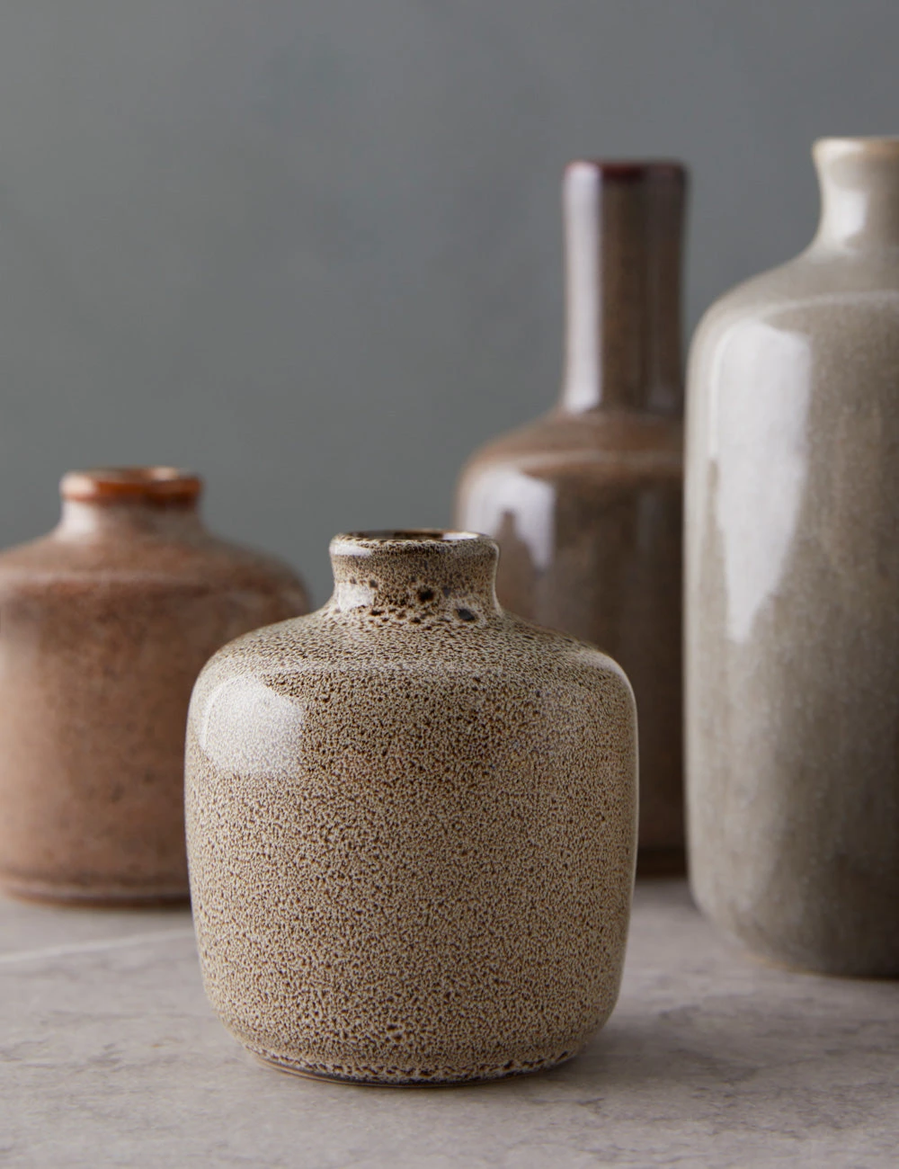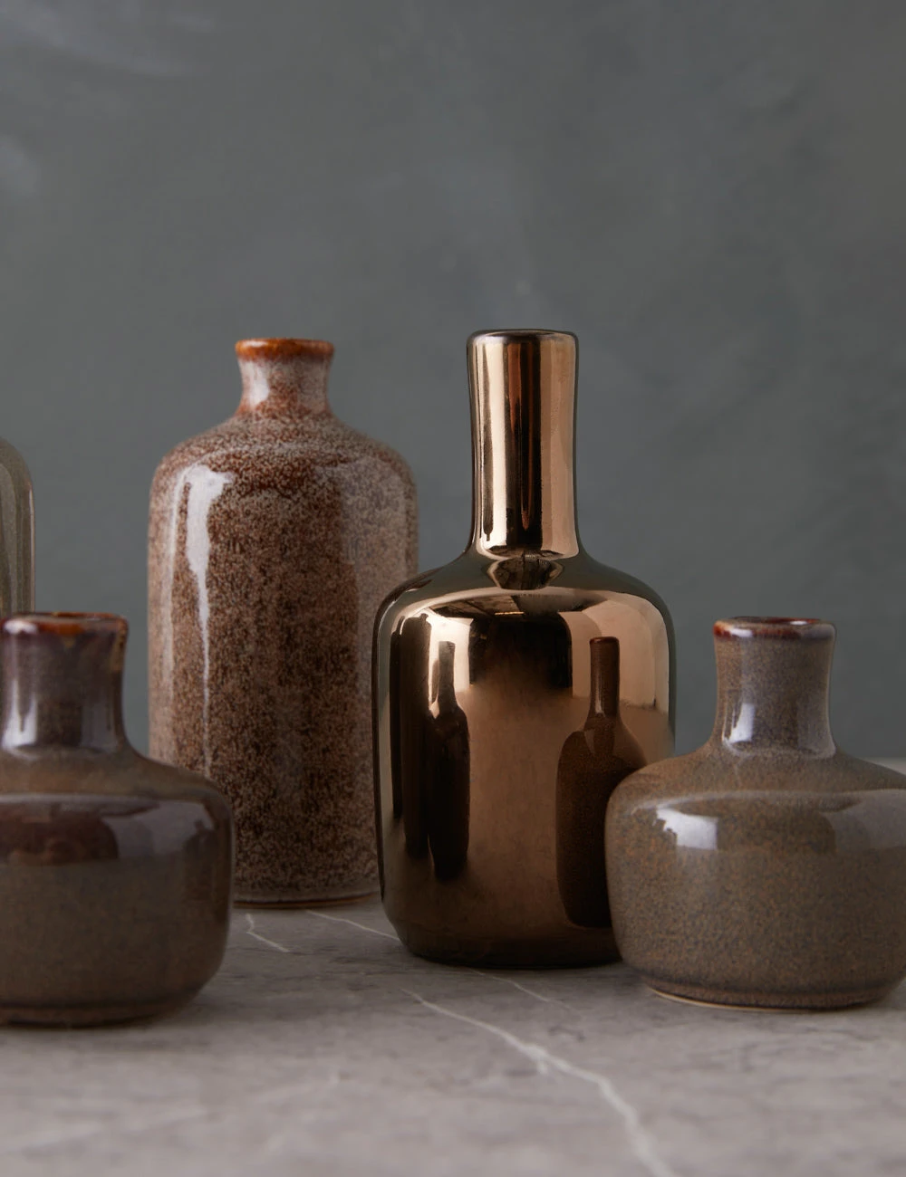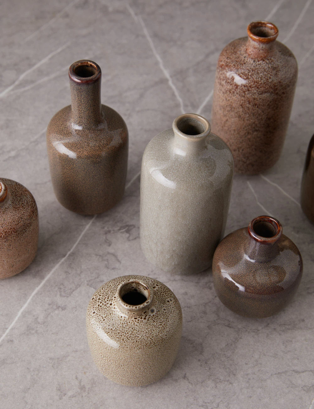 Coming in a range of sizes and shapes, this octet of stoneware vases lets you play with height, scale, and tones for your tabletop display. Group these vases together, or you can even scatter them throughout a living space to create a cohesive look.