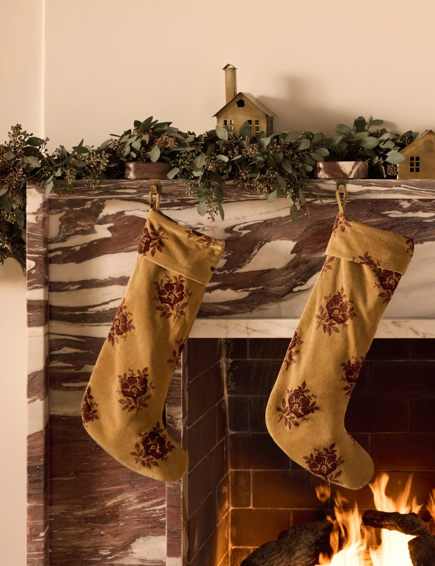 Our Montreal stocking offers a fresh take on timeless style with the luxe touch of velvet. A delicate floral motif adorns an open field, adding a timeless touch of pattern to your holiday mix.