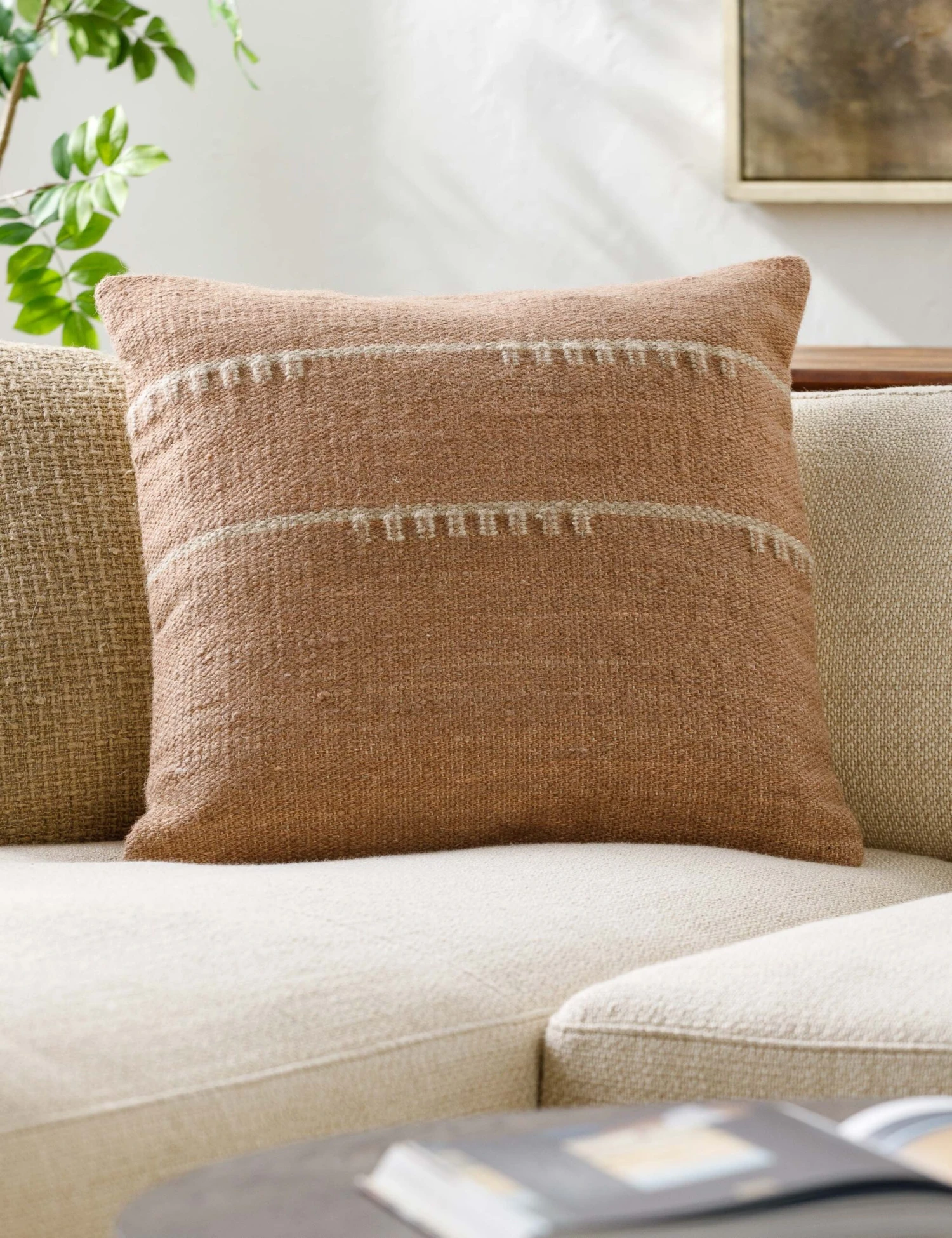Mufaro is the perfect throw pillow for a space where modern design meets timeless taste. Sawtooth accents add a touch of pattern to the pillow, setting the tone for warmth and sophistication. The woolen blend features a touch of cotton for an accent that’s naturally soft and made to last.