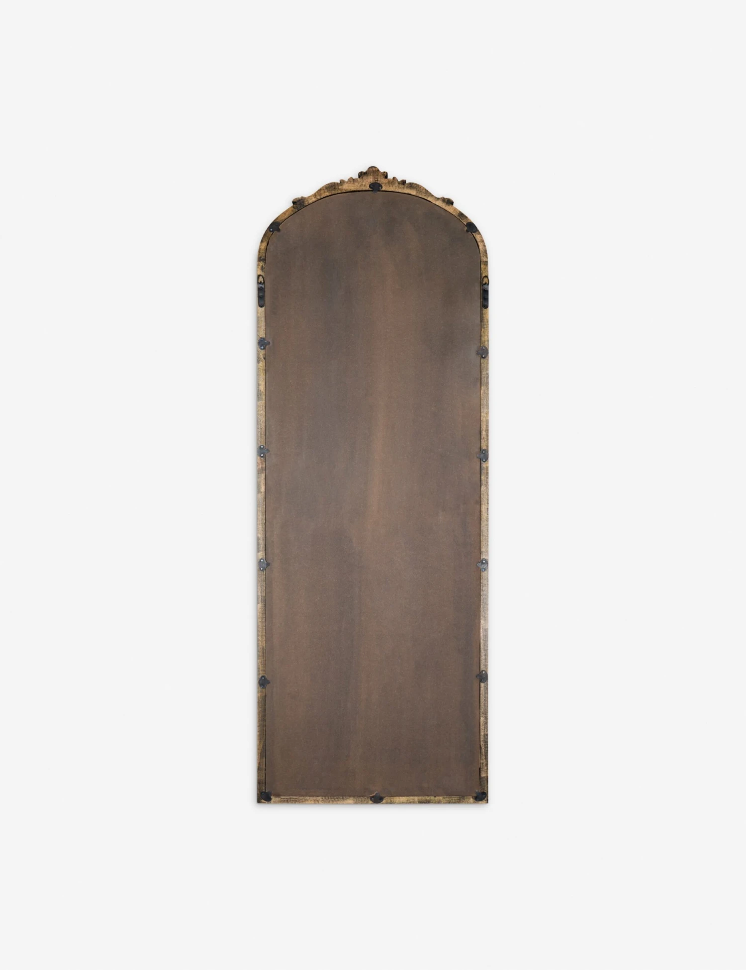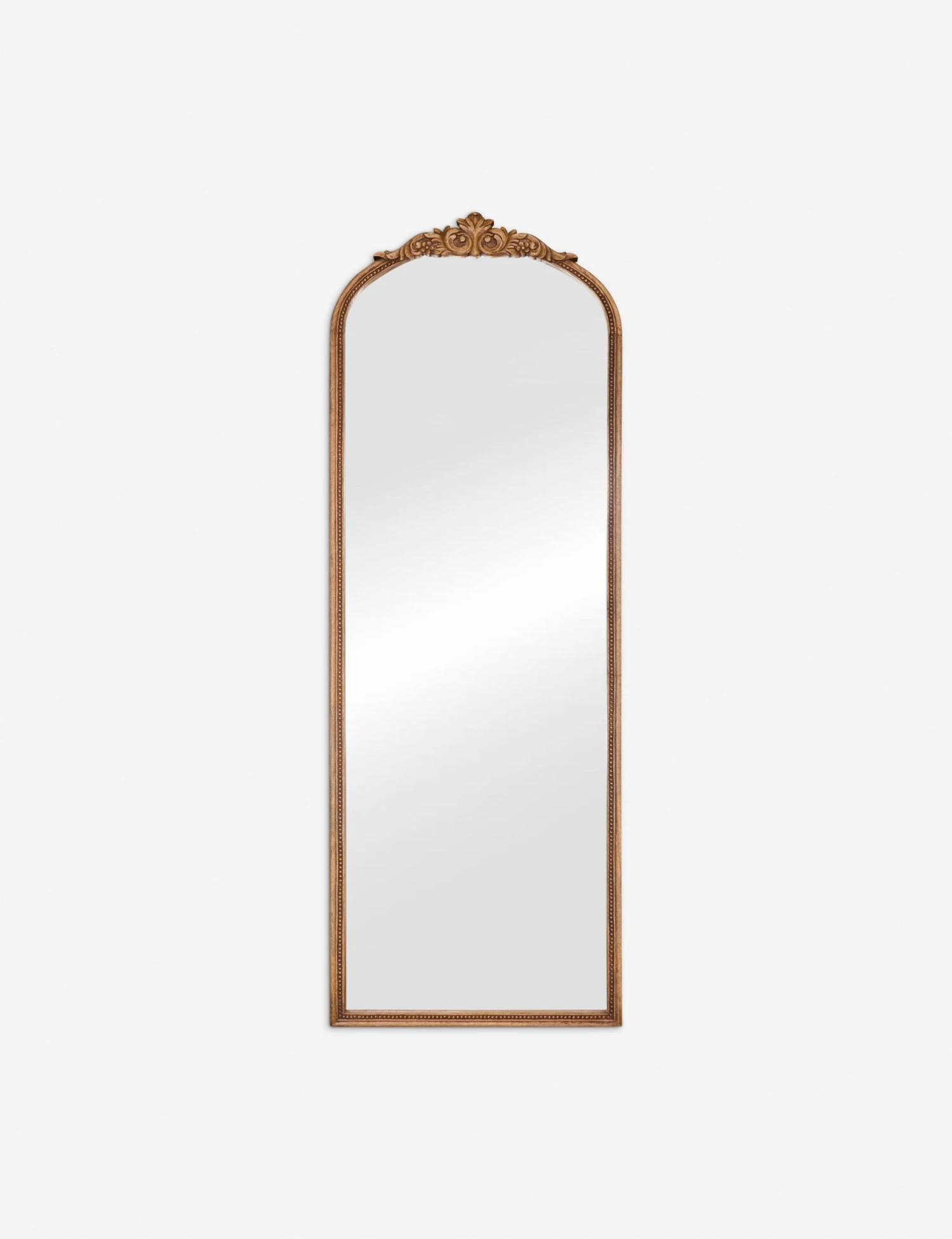 The Noya mirror brings a touch of romance to any space with its tall, arched silhouette and ornate detailing. A carved crest crowns the wooden frame, while beaded trim adds delicate texture around the edges. Style this full-length mirror in a bedroom or hallway to reflect light and inspire a timeless, collected feel.
