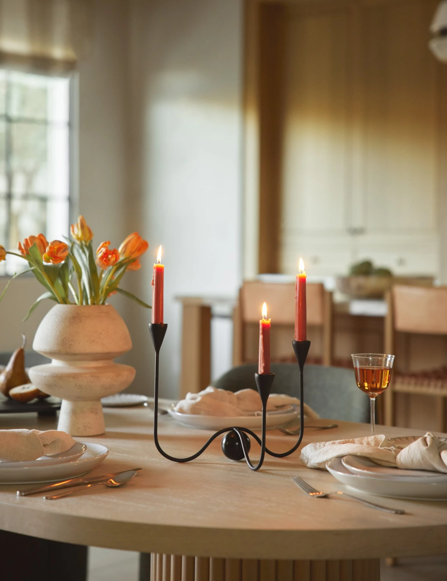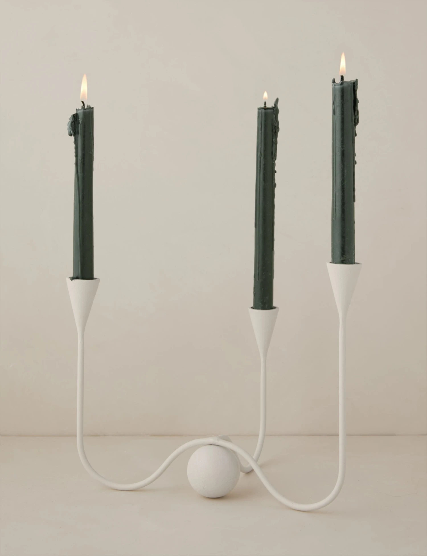 Style your table for casual splendor with this beautifully shaped candelabra. The slender stems flow from the rounded base in a pleasing play of material of form—balancing timeless elegance with a modern poise. This candelabra is from our exclusive Sarah Sherman Samuel collaboration and features all the trademarks of her warm, edited style.