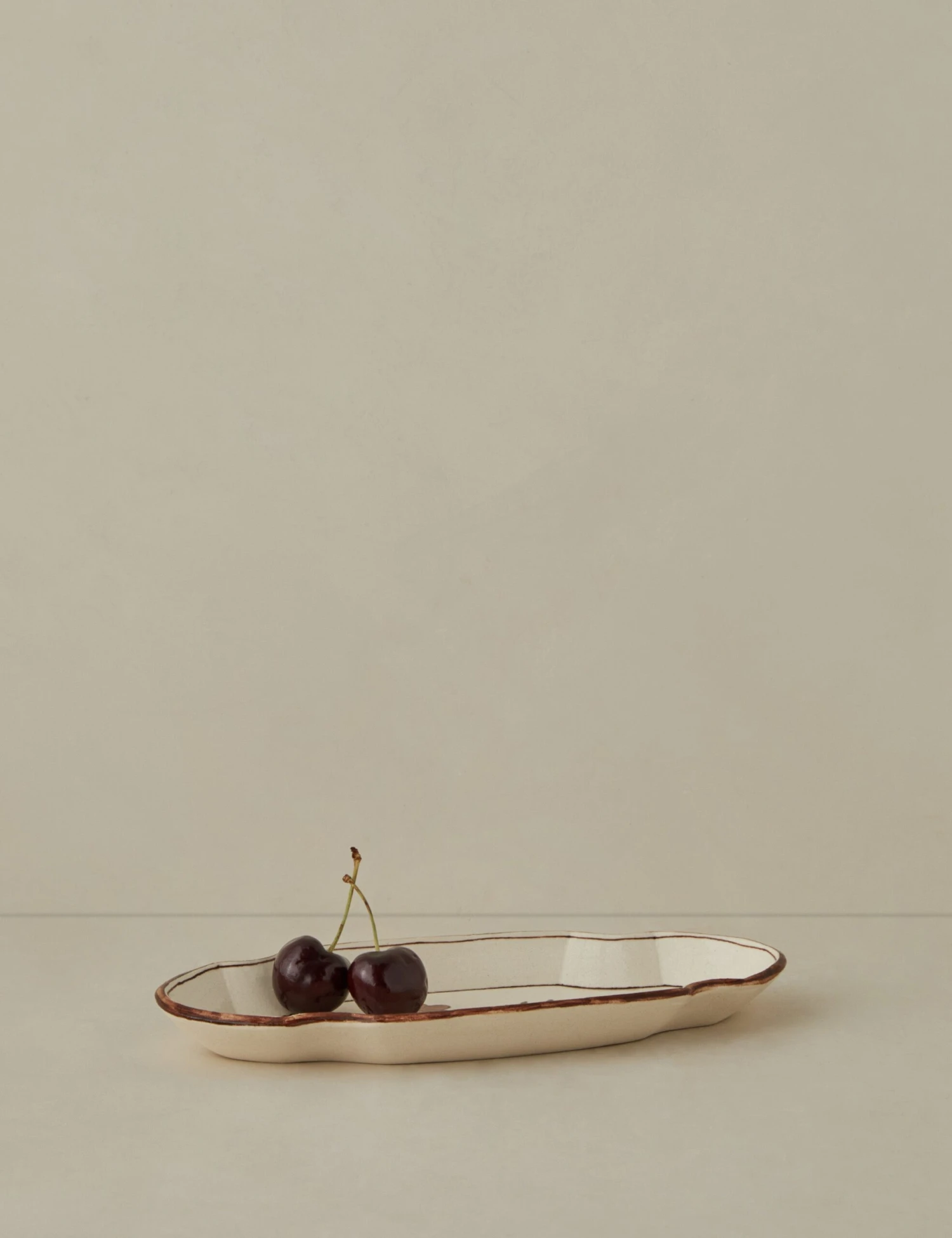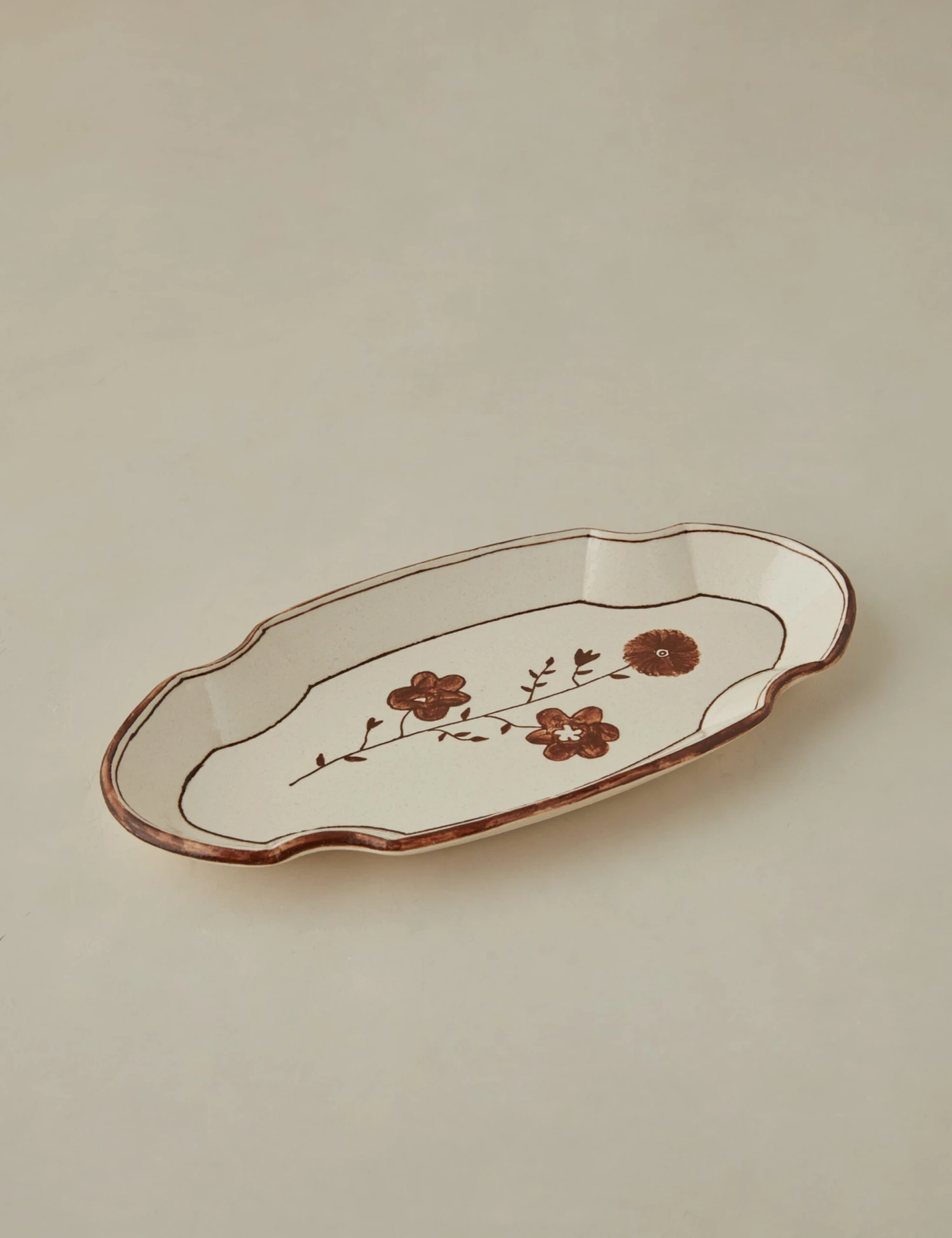 Los Angeles-based ceramicist Stephanie Dawn Matthias’s work recalls the traditions of European folk art in small-batch, luxury ceramics—handcrafted and hand-painted to bring a timeless touch to modern interiors. This oval serving dish features a classic shape with a delicate floral design and painted trim. It can be used for dining or decor, but hand-washing is recommended.