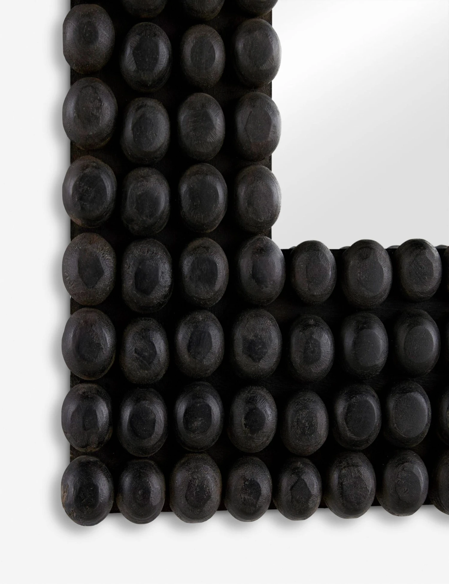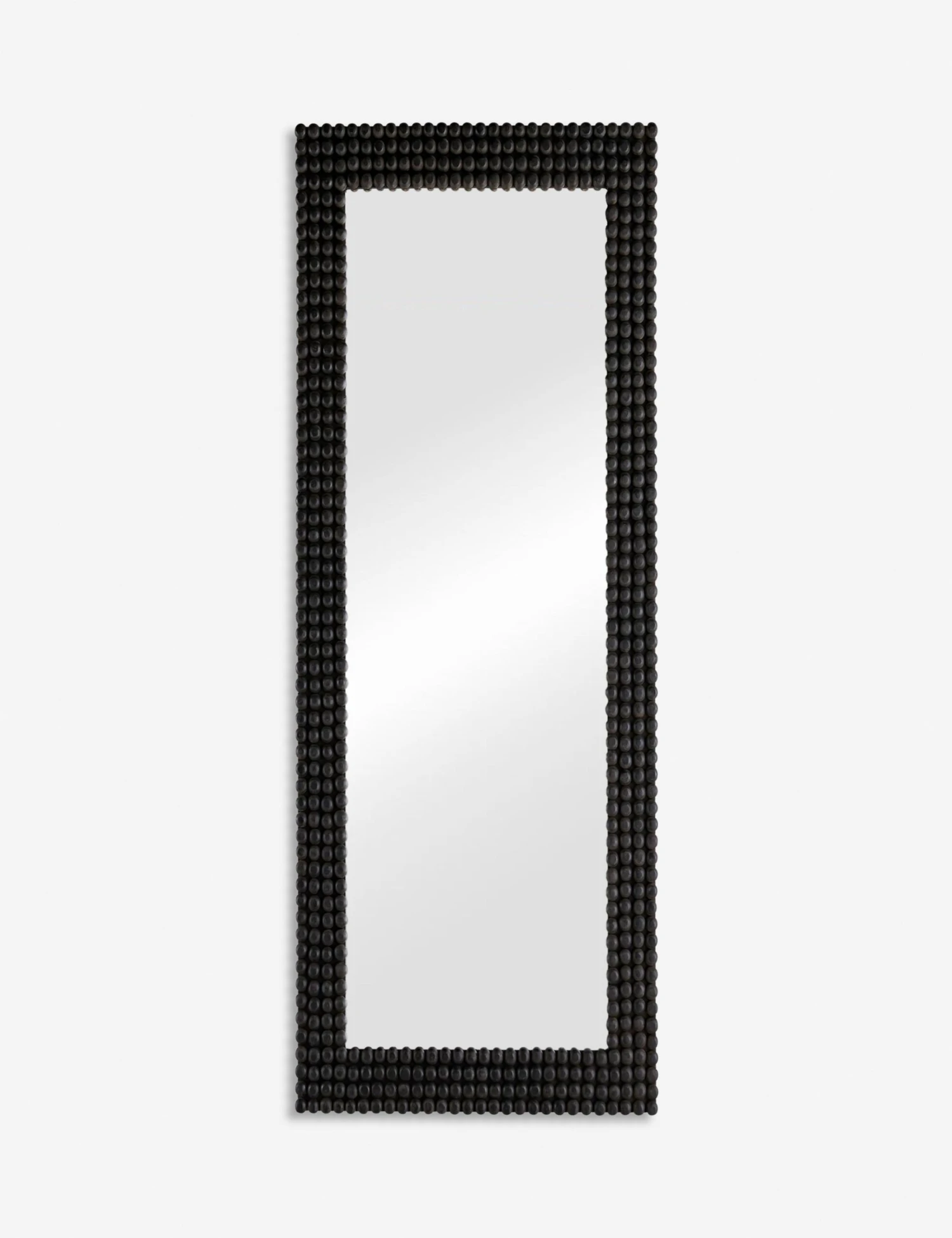 The Paxton mirror brings chic texture to modern design with its beautifully crafted wood frame. The hand-carved knobs are finished in a stunning black stain for tone-setting impact. Mount or lean this floor mirror from your bedroom to lounge to create an artful statement that opens up the room.