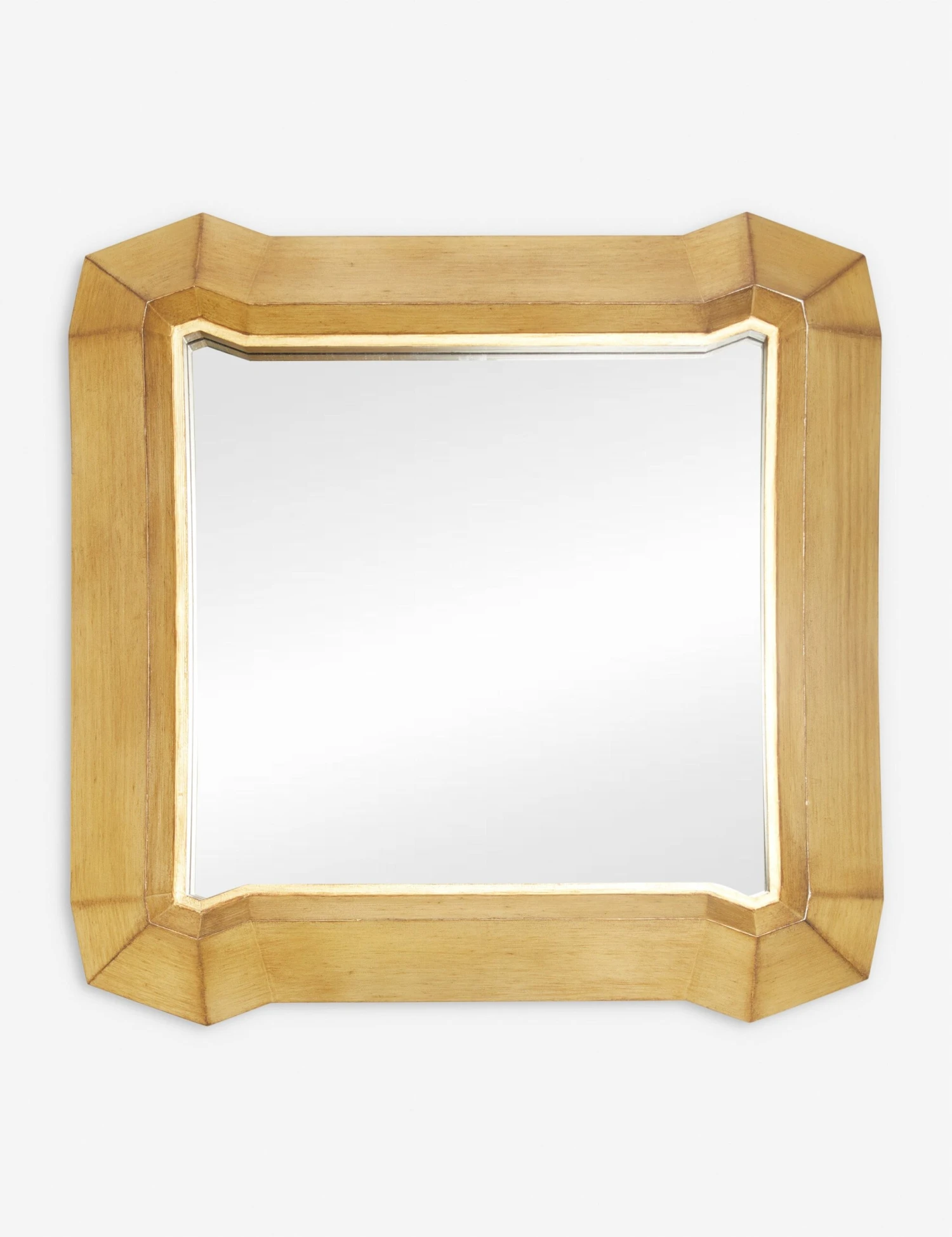 A dynamic shape brings statement appeal to this resin-framed mirror. The handcrafted design features a subtle grain and angular lines to add dimension to any wall. Mount this decorative mirror anywhere you want to augment light and create a more spacious, open feel.