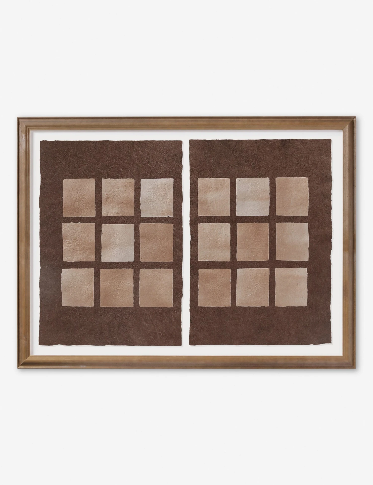 Phobos features a textured composition with handmade paper layered into a tonal collage. Each piece is floated in a light walnut frame to set off the grounding palette with quiet impact. Hang this diptych artwork to create balance and depth in your wall decor with a statement moment.