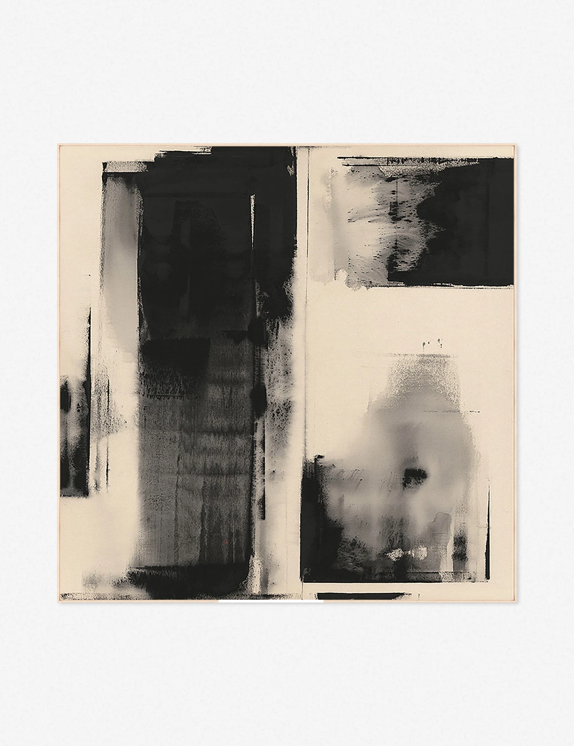 Abstract moments arranged as if in panels bring a striking balance to this original wall art painting by David Erickson. Unified by a minimalist palette, this work features a dynamic blend of marks bringing a high-tone appeal to your wall art collection. It works best above a bed, sideboard, or console table.