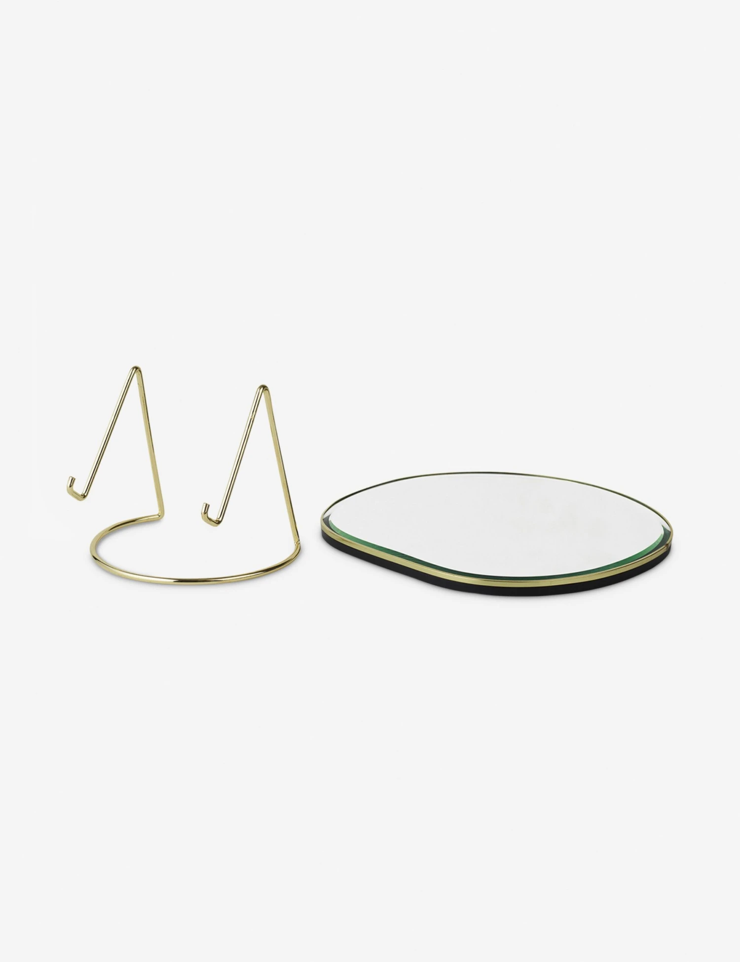 The Pond mirror’s organic silhouette is encased in a slim metal frame and stand, offering a hint of dimension and contrast in any setting. This striking tableteop mirror is a stunning piece that adds artistry to any tabletop. Perfect for a dresser or for quick look-checks at your home workspace.