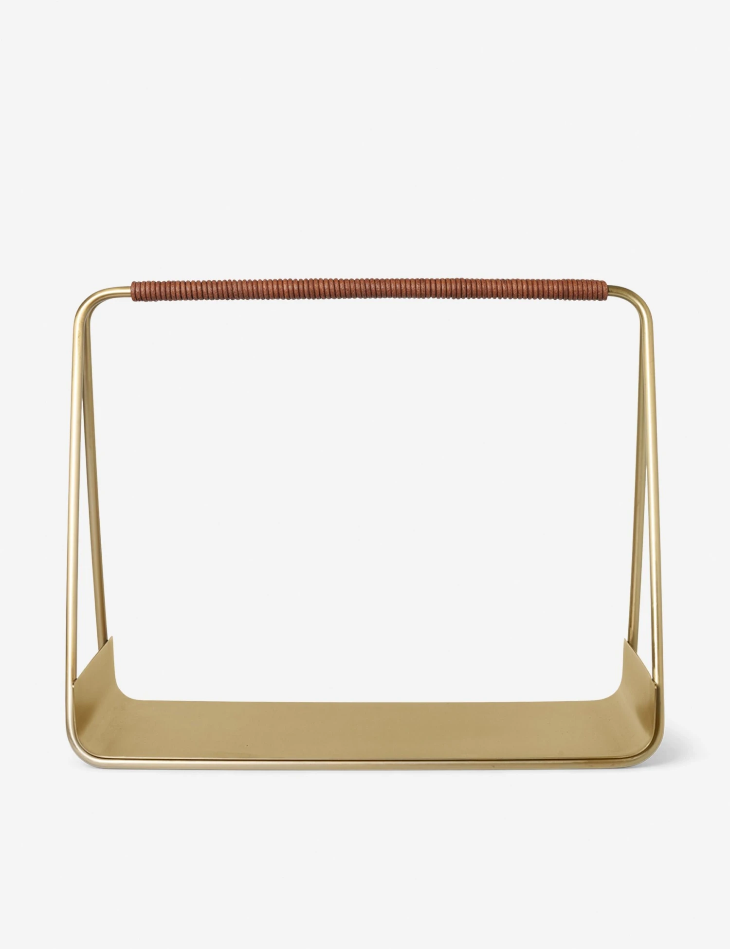 Strike a modern look beside your hearth with this log holder. Slim lines and rounded corners bring an artful edge to the frame, setting off any bundle with chic appeal. A leather-clad handle elevates this basket-style holder with a practical touch for transporting logs.