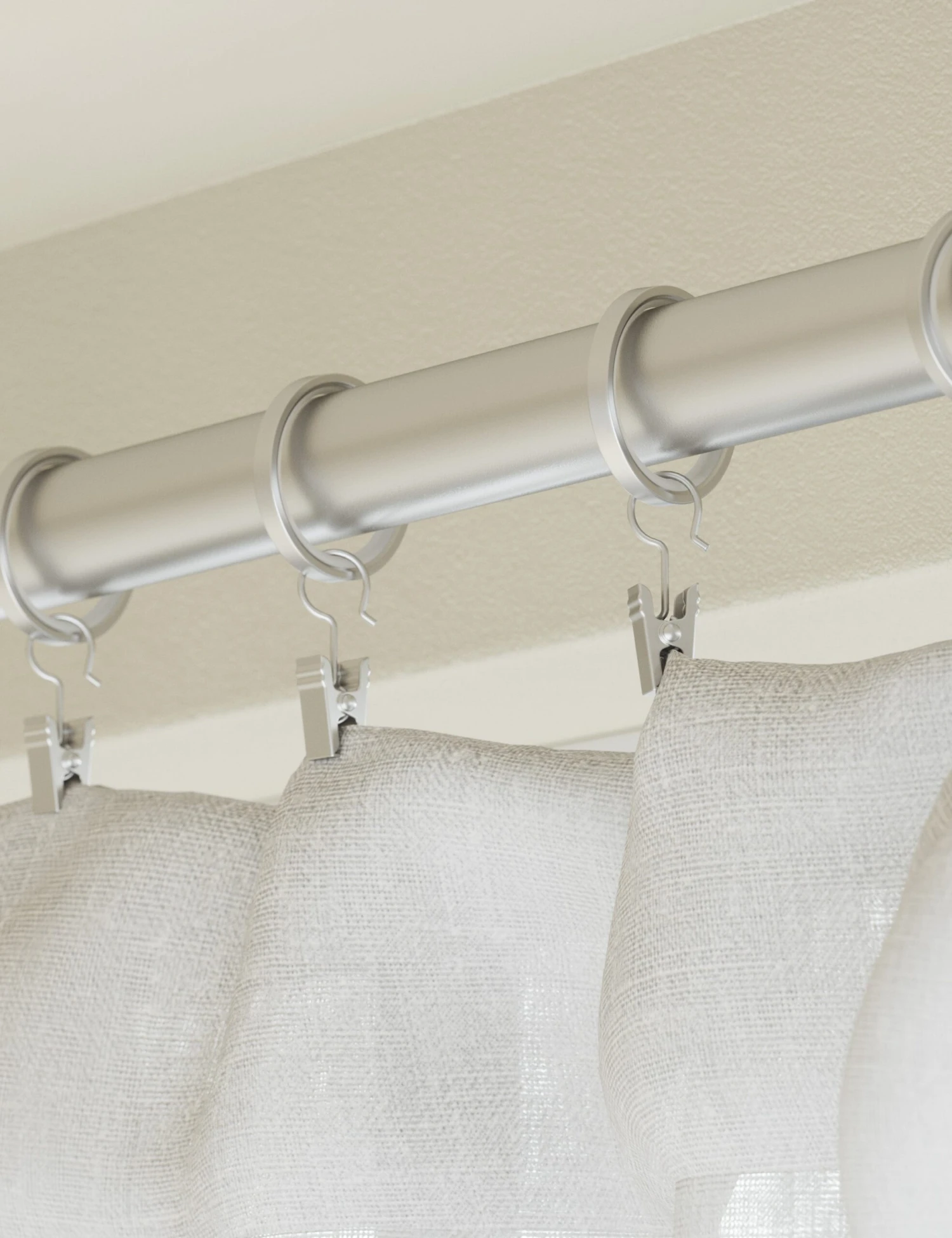 When it comes to livable design, it’s the small functional touches that make the room. These versatile clip rings bring seamless action to curtains or drapes. With a sleek finish to suit, these metal curtain rings fit transitional and modern decor alike. Made for use with 1″ curtain rods.