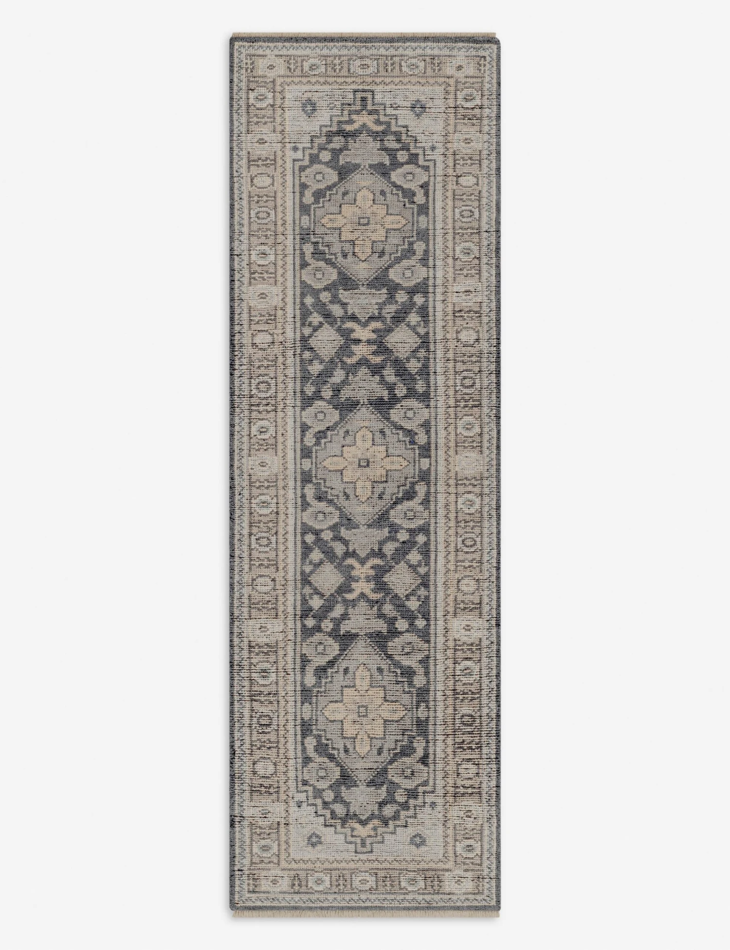 Set the stage for grand decor with this ornate hand-knotted rug. Its traditional medallion design offers rich pattern underfoot, perfect for anchoring your style with a timeless feel. Made entirely from New Zealand wool, its tread is soft and low so you can elevate a high-traffic living room, dining room, or entryway hall.