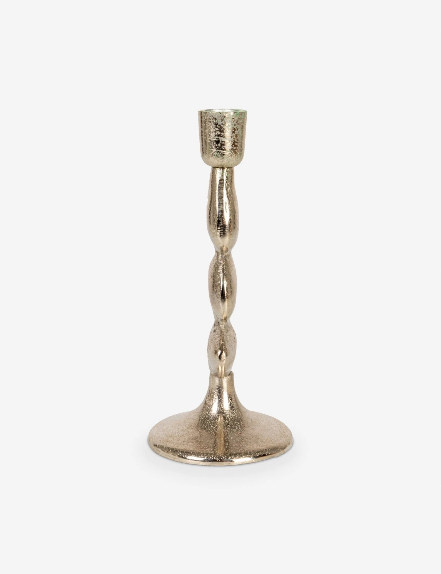 This silver taper holder stacks rounded forms for a bold, dimensional take on the classic candlestick. Style it on a mantel or dining table for a sculptural touch of warmth.