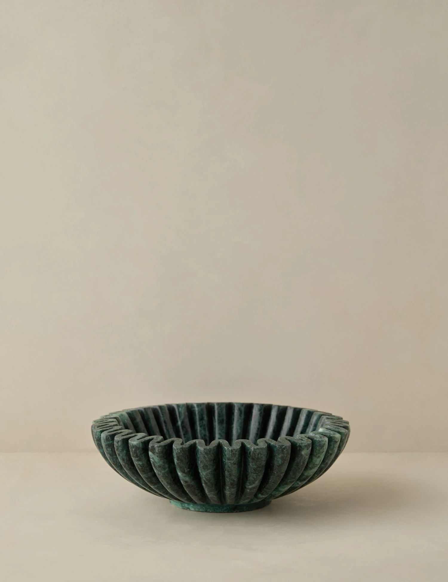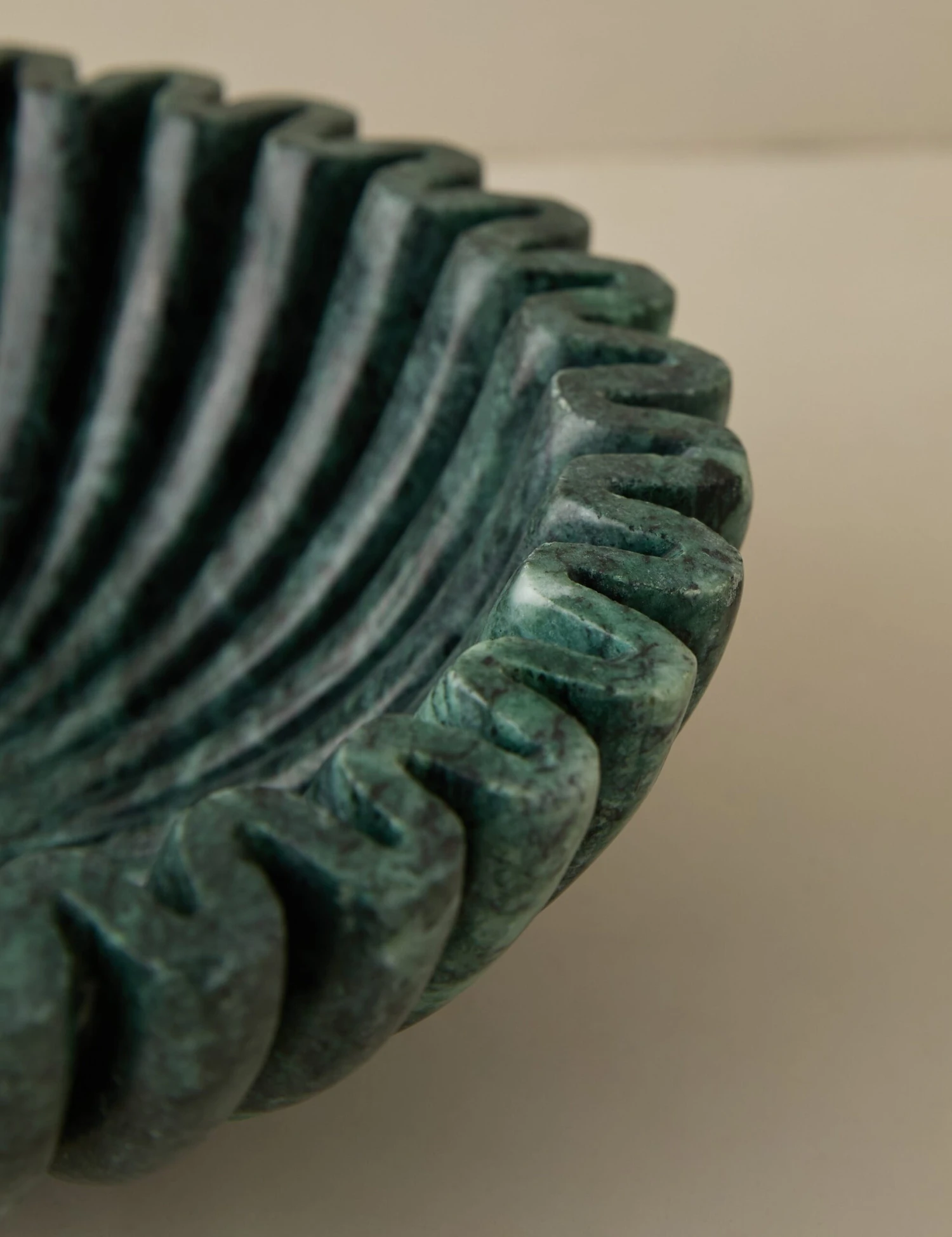 Anastasio Home works with craftspeople around the world to bring limited-run accessories and upcycled luxury goods to your home. The Ruffle bowl is cut from a single piece of stone and worked by hand into its sculptural form. This heirloom-quality piece shows the unique marks and imperfections of the artisan’s process.