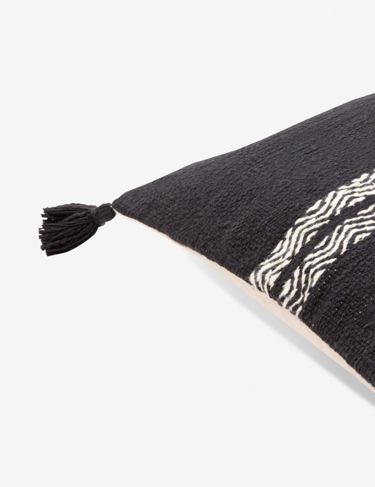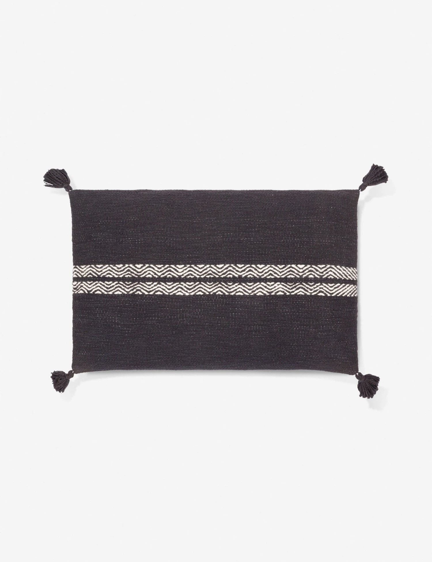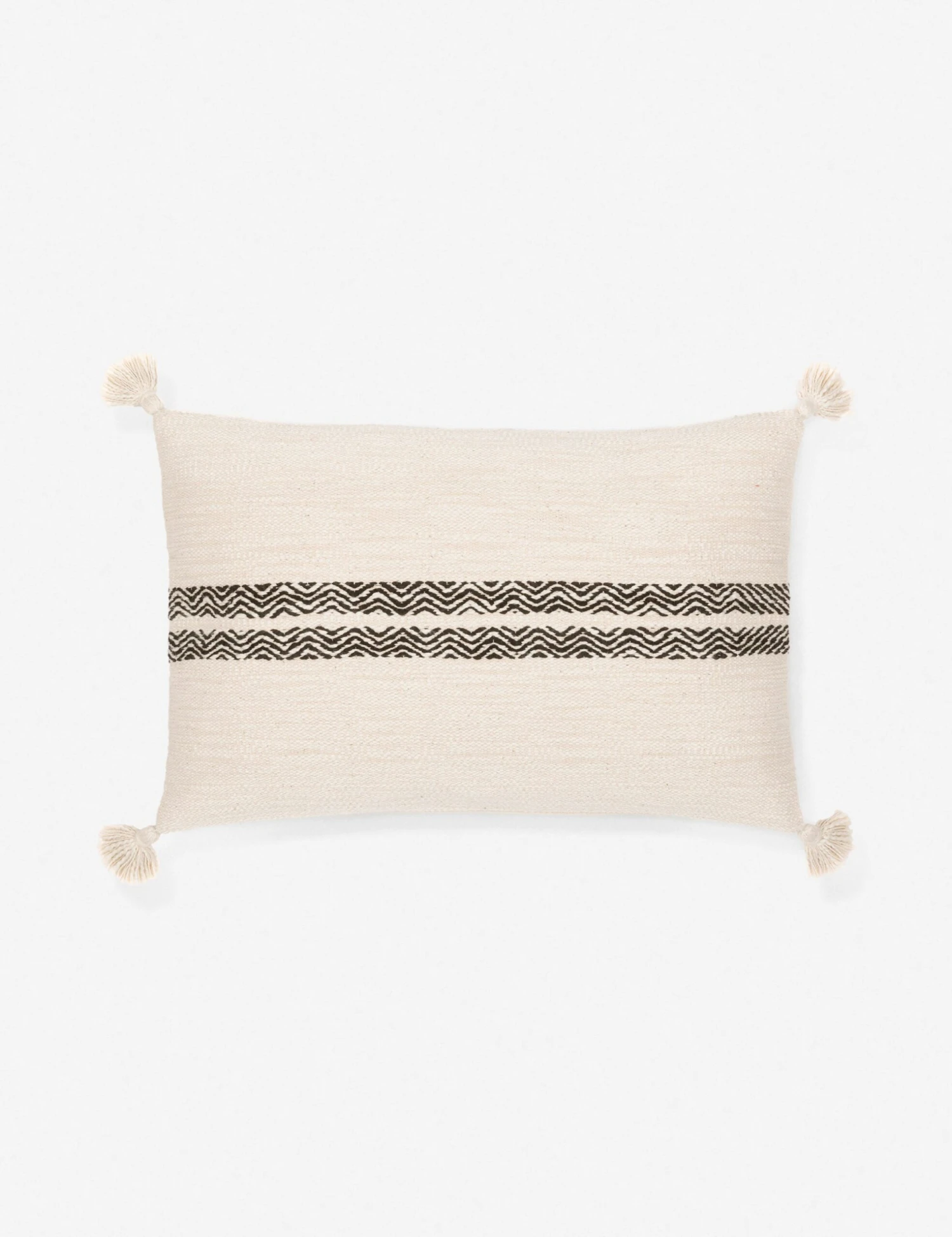 Introduce a woven textural layer to your sofa with this durable cotton lumbar throw pillow featuring tasseled corners. Two dynamic stripes interrupt a neutral-toned field on these casual throw pillows, offering graphic minimalism with plenty of visual appeal. Style this pillow as a cozy touch for a collected space.