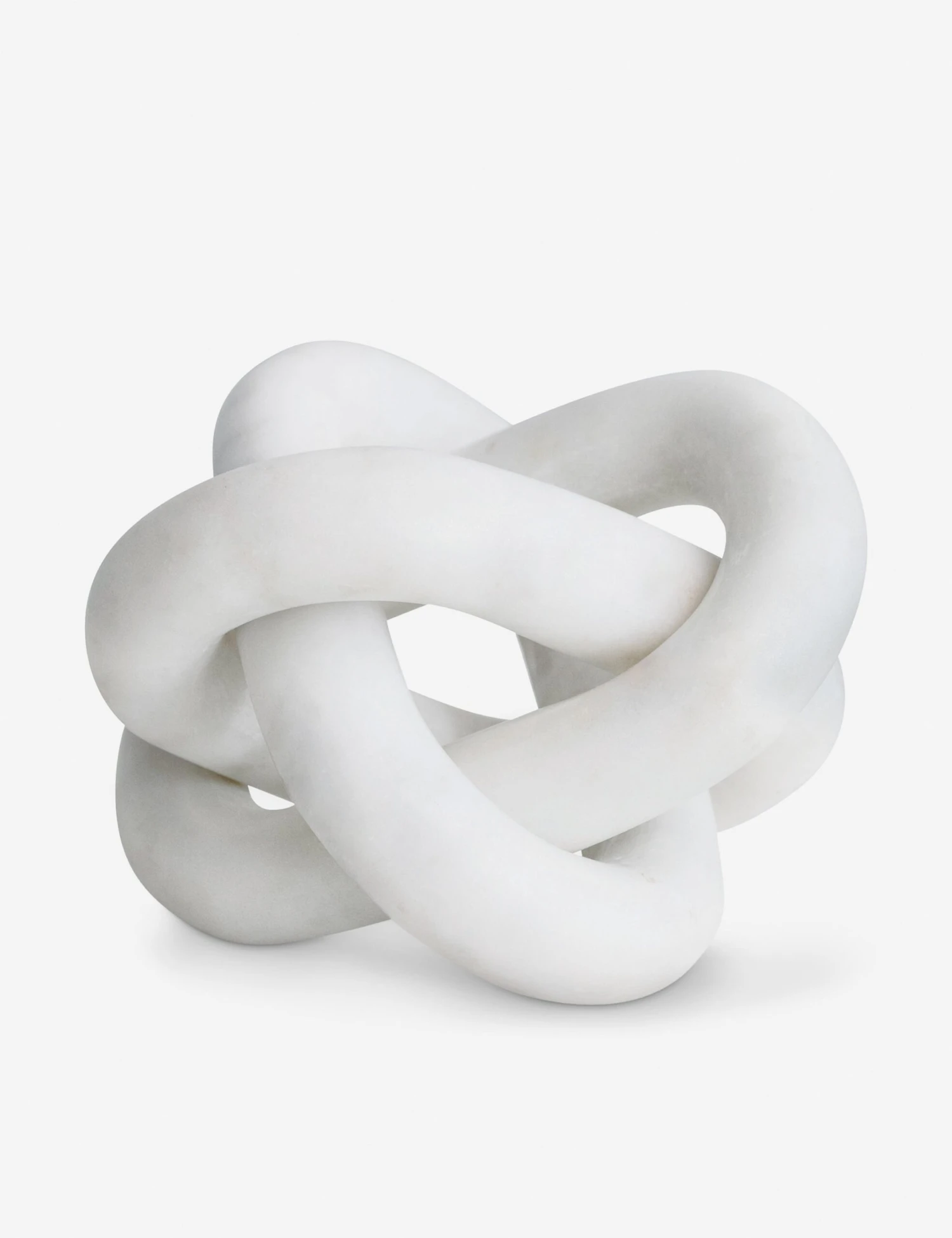 This decorative marble chain offers a refining touch for fresh appeal. Carved from white marble, its interlocking links create a knot-like structure to bring texture and depth to a bookcase, console table, or sideboard.